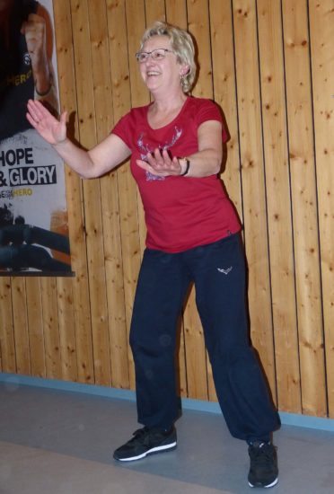 Nach wie vor jedoch leitet sie ehrenamtlich Gymnastikkurse für die Landfrauen – aber auch für Männer, seit 2005 hat sie entsprechende Trainer-Lizenzen erworben.
