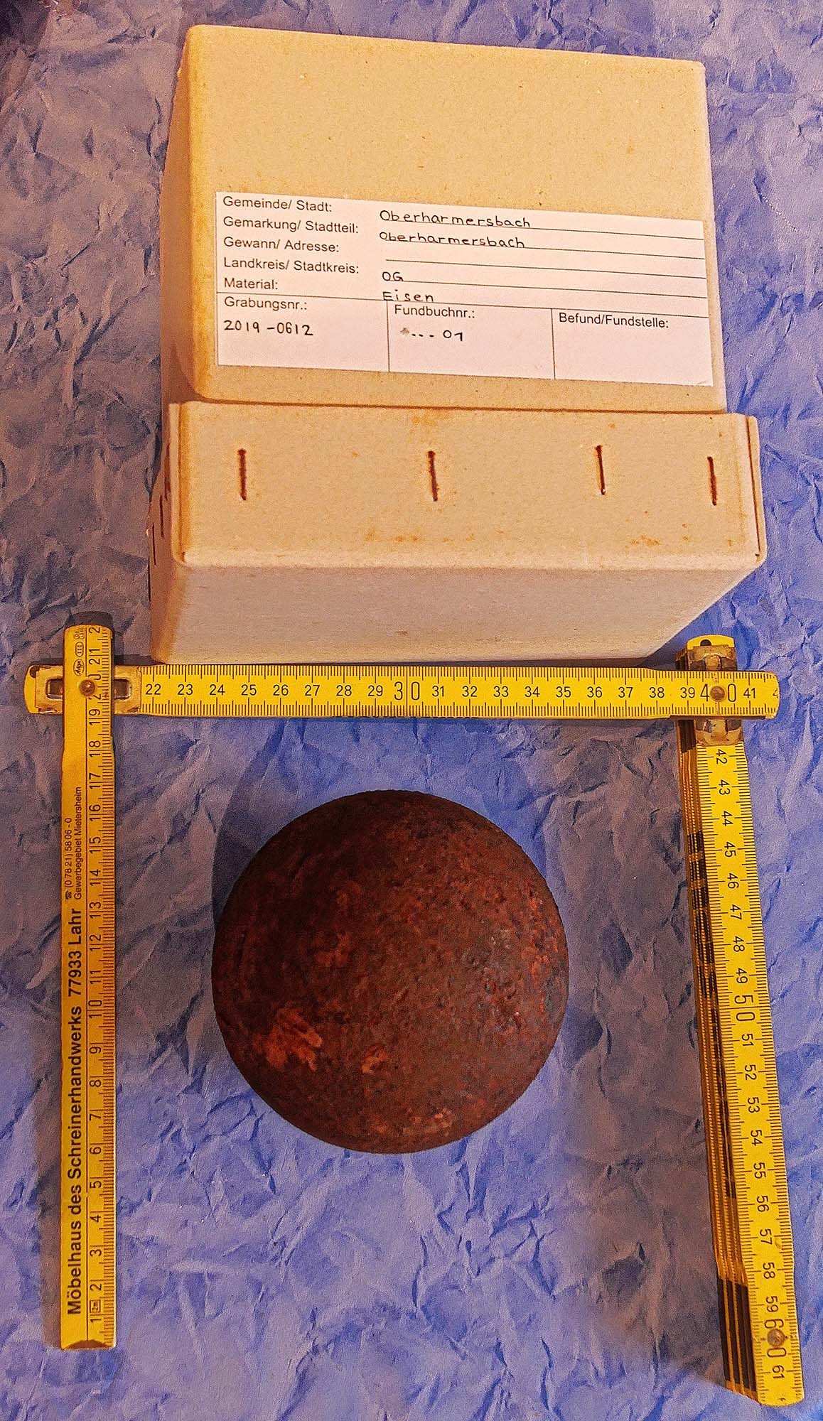 Nach ihrer Odyssee durch verschiedene Abteilungen des Landesamts für Denkmal­pflege ist die Kugel nun wieder in Oberharmersbach. Der Revierförster hat die genauen GPS-Daten des Fundortes aufgenommen. Nun wird überlegt, wie und wo dieses Relikt aus dem 17. Jahrhundert der Öffentlichkeit präsentiert werden kann.