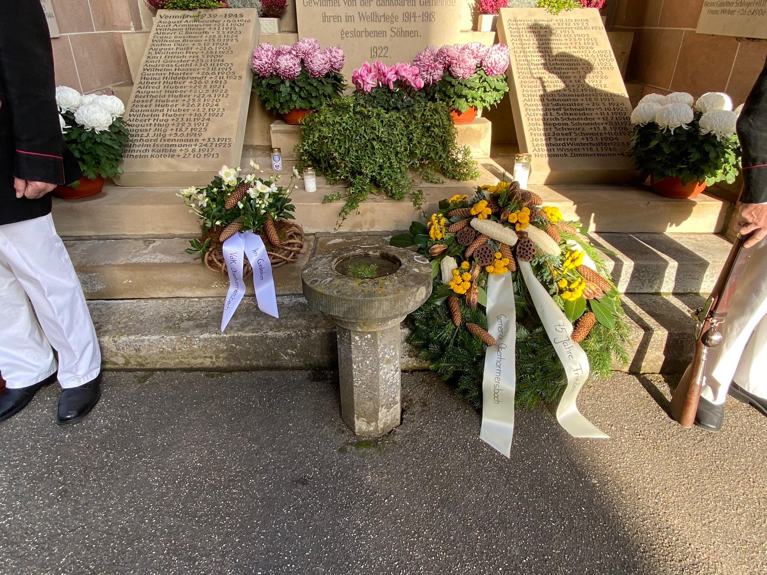 Im Gedenken an die Opfer der Weltkriege wurden Kränze niedergelegt. Foto: Gemeinde