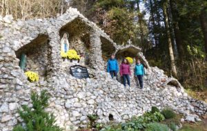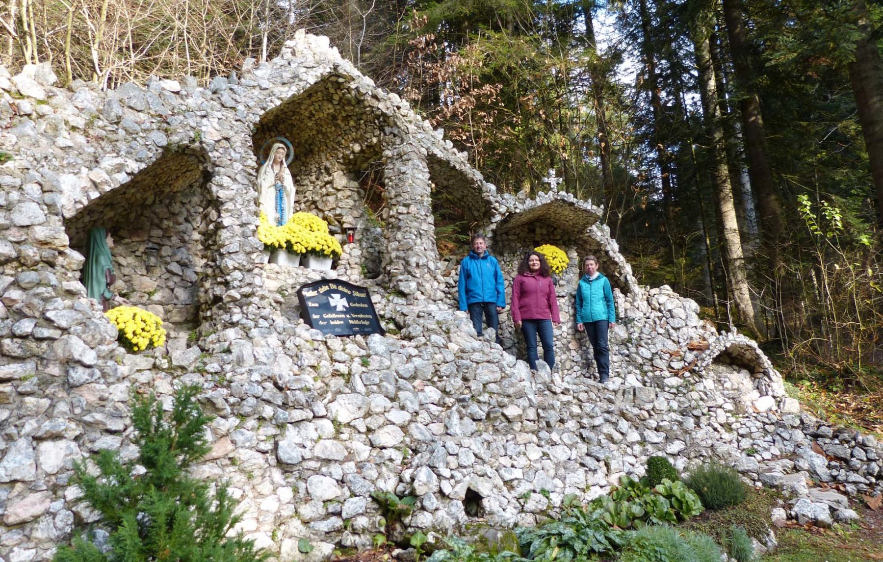 Diese entstand in den 1920er Jahren, zum Gedenken der Opfer und Vermissten des Ersten und dann auch des Zweiten Weltkrieges, nach dem Vorbild der Mariengrotte im französischen Lourdes. Initiator sowie Planer war ein Bruder von Eugenias Großvater, seines Zeichens Pfarrer. Beim Bau der imposanten Gedenkstätte jedoch halfen viele Familien aus dem Tal – die Steine stammen aus einer Schwerspatgrube, die damals in etwa einem Kilometer Entfernung taleinwärts betrieben wurde. Die Einweihung des imposanten Denkmals fand im Jahre 1928 statt.