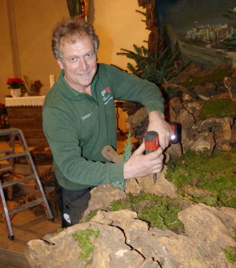 »Und dann vor Weihnachten haben wir bestimmt drei bis vier Wochen lang immer mal wieder an dieser Krippe gearbeitet. Ich war der Handlanger«, lacht er, »und der Pater hat die Wurzeln irgendwie zu einer Krippe zusammengefügt.« Wie fortan nun jedes Jahr.