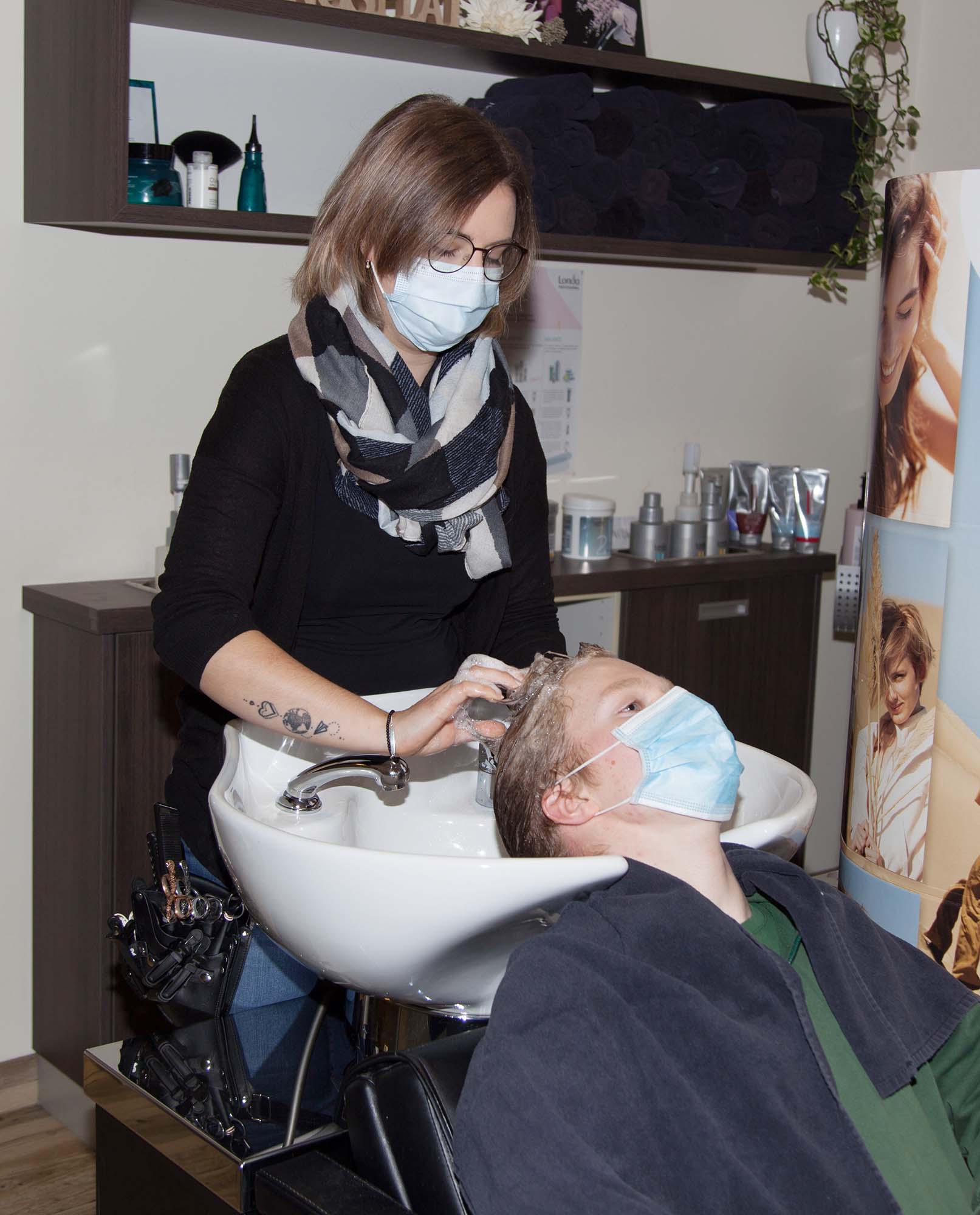 Immer wieder klingelt das Telefon, Termine werden gebucht. Während Vanessa den nächsten Kunden sicher mit Abstand durch den großen Raum zum Waschen der Haare dirigiert, wird hier und da die gefallene Haarpracht zusammengekehrt, werden Scheren, Kämme und Sitze desinfiziert. Für das Personal sieht alles nach Routine aus. »Ich hoffe nicht, dass wir noch ein drittes Mal schließen müssen. Denn dass wir davon verschont bleiben, wurde uns im vergangenen Oktober schon mal versprochen«, ist sich Magdalene Spitzmüller bei Äußerungen von Politikern nicht mehr so sicher. Aber schließlich seien Friseure »systemrelevant«.