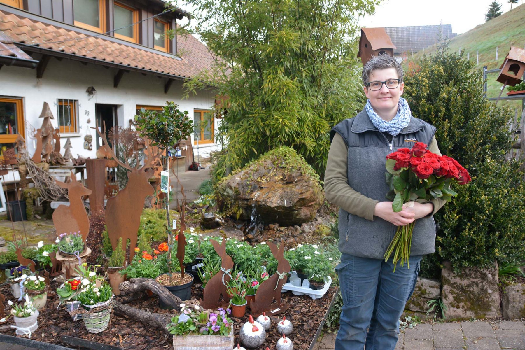 Ein besonders breites Angebot hat die Gärtnerei Lang-Golla an Deko-Artikeln aus Edelrost. Passend zur Jahreszeit gibt es muntere (Oster)-Hasen oder Hühner. Hirsche und Rehe, Deko-Kugeln oder ausgewählte Sinnsprüche bereiten das ganze Jahr Freude. Die Deko-Artikel der Firma Saremo kommen übrigens aus Deutscher Herstellung.