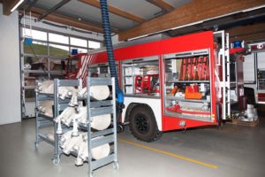 In der großen Fahrzeughalle sind gerade neue Schläuche eingetroffen, die es noch zu verstauen gilt. »Mit wechselnden Kräften warten wir Fahrzeuge und technische Geräte, um notfalls ausrücken zu können«, beschreibt der Kommandant kurz und bündig die weitgehend zur Untätigkeit verurteilte Feuerwehr. Als ergänzende Tätigkeiten nannte er auch die zusätzliche Aufrüstung der Fahrzeuge gemäß den Vorschriften für einen Einsatz unter den aktuellen Bedingungen.