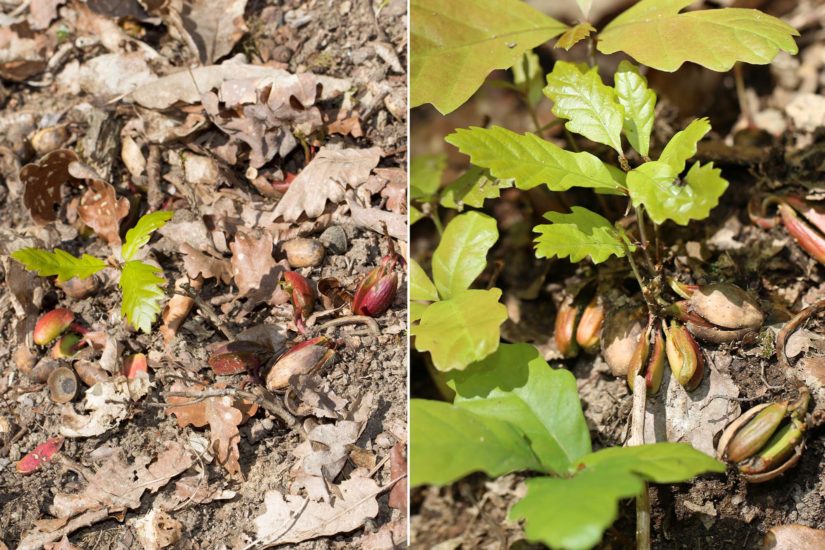 Geradezu verschwenderisch haben Eichen an der »Katzenhalde« ihre Früchte abgeworfen. Entlang der Wege lassen sie sich besonders gut finden, weil das Laub sie nicht überall bedeckt. Zwischen den beiden Bildern liegen gerade drei Wochen. Deutlicher lässt es sich kaum fassen: Die Natur braucht den Regen…