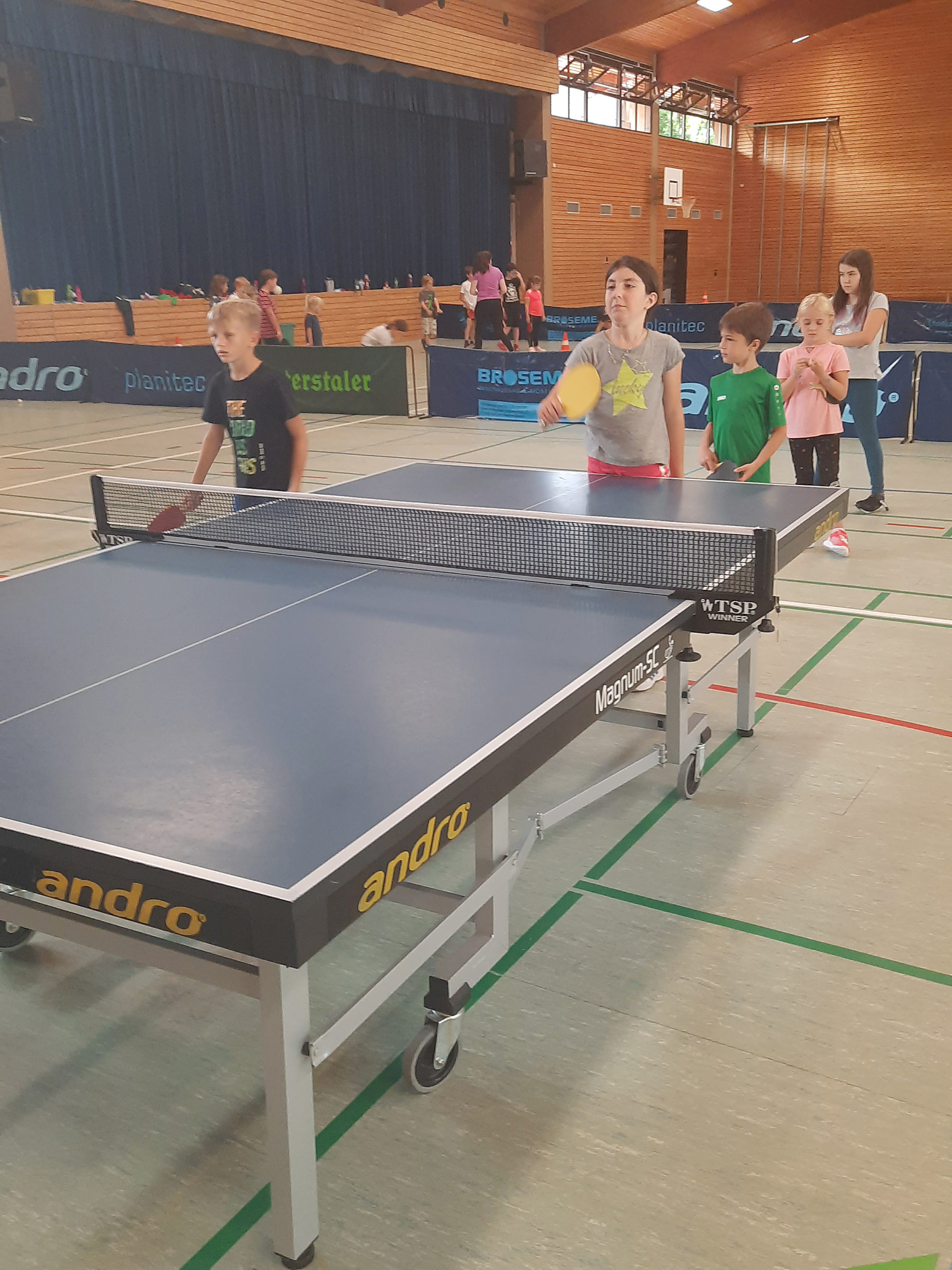Auch an den Tischtennis-Platten ging es sportlich her, so wurde den Kindern Bälle eingespielt, die sie auf die andere Seite schlugen.