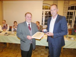 Im Namen der Gemeinde erhielt Hans-Josef Rauber (links) von Bürgermeister Richard Weith die große Silbermünze für 40 Jahre Vereinszugehörigkeit.