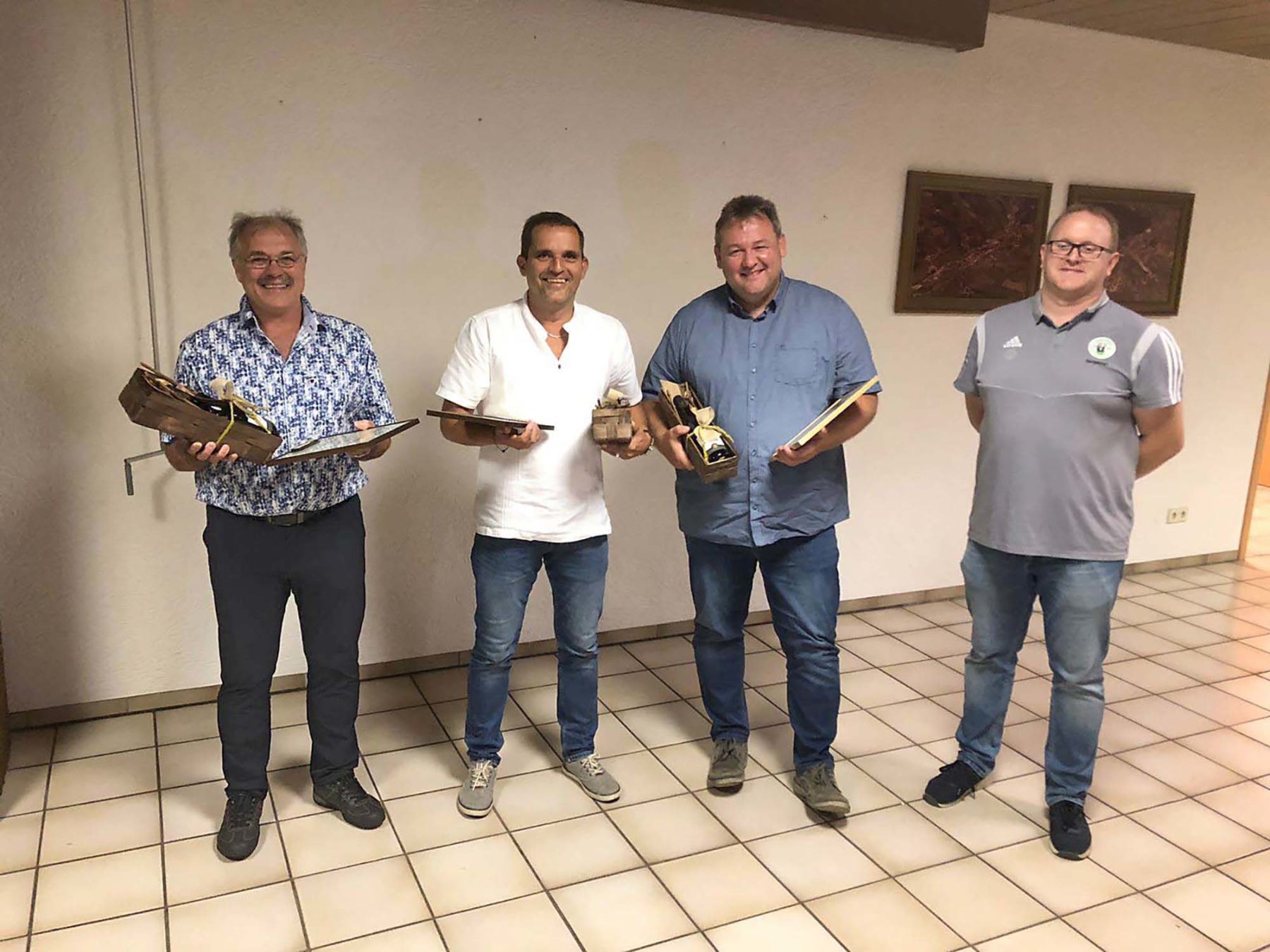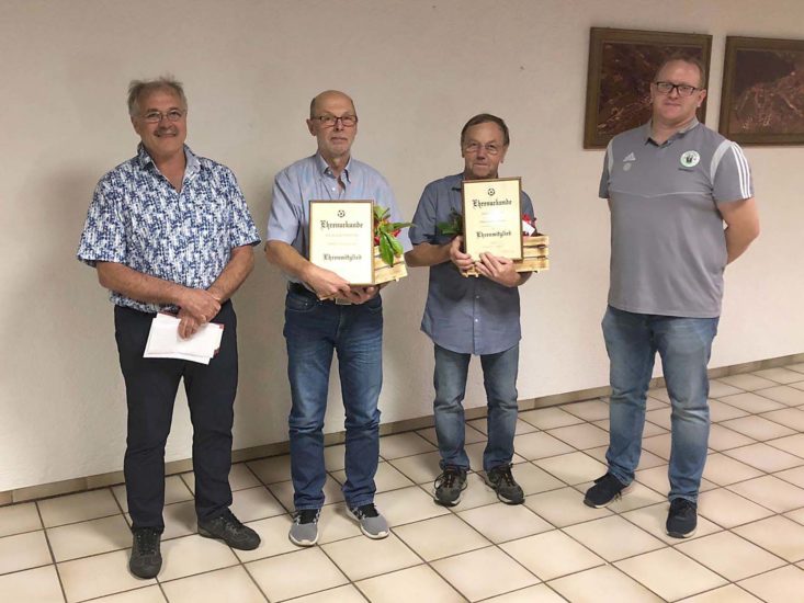 Der frühere Vereinsvorstand Helmut Killig nahm die Ehrungen der Vereinsjubilare vor. Für 15 Jahre Vereinszugehörigkeit erhielten Dominik Bleier, Jürgen Echle, Simon Kornmayer, Hans Roth, Jan Lukas Schäck, Stefan Lehmann, Tobias Stapf und Florian Boschert die silberne Vereinsnadel. Die goldene Vereinsnadel für 35 Jahre erhielten Frank Burger, Dietmar Hug und Helmut Killig. Die Versammlung verlieh Willi Kornmayer und Hans Albrecht für ihre langjährige Vereinstreue die Ehrenmitgliedschaft im SVO.
