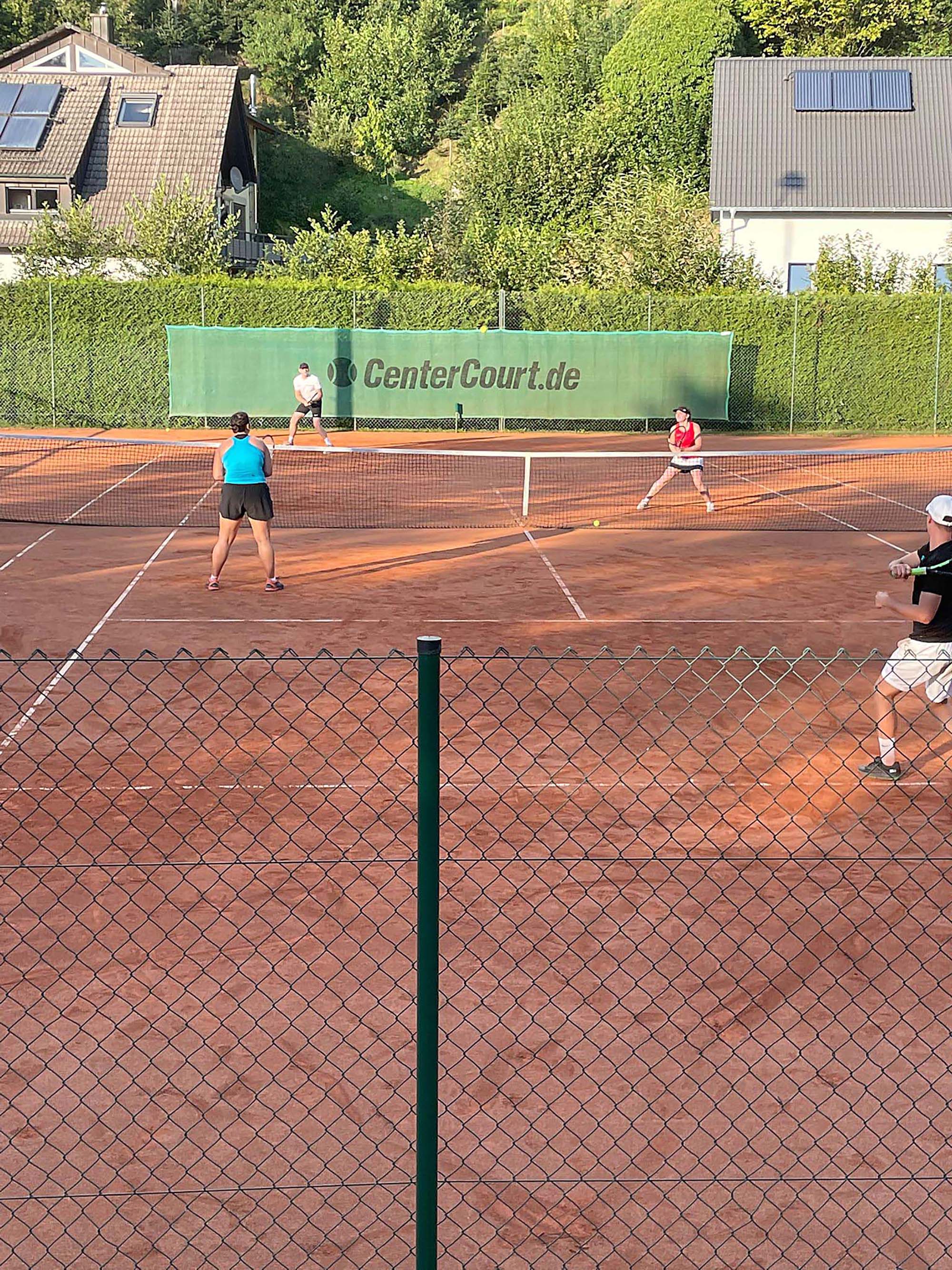 Dennoch wollte man die drei Doppel natürlich auch so erfolgreich wie möglich gestalten, um so viele wichtige Punkte für die Tabelle mitzunehmen. Da der Gegner aus Offenburg bei den Damen auf einer Position wechselte, war es schwierig für die Doppel die richtige Aufstellung zu finden. Dies gelang dem Team um Mannschaftsführer Markus Furtwengler jedoch hervorragend. Doppel 1 mit Markus Furtwengler und Eva Kiesel ging bereits spannend und eng los und so blieb es auch das ganze Match über. Ende des ersten Satzes schafften die beiden es dann ein entscheidendes Break zu erzwingen und sicherten sich Satz 1 knapp mit 6:4. Auch Satz 2 blieb eng und umkämpft, doch wieder waren es die beiden Gastgeber die es schafften, in den richtigen Momenten zuzuschlagen und sich so auch Satz 2 mit 6:4 zu sichern.