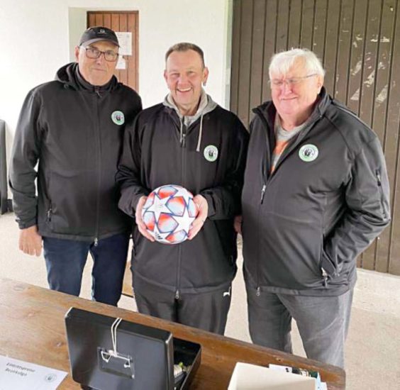 Karl und Cölestin Kornmayer, sowie Joachim »Männi« Albrecht wünschen der Mannschaft von Trainer Markus Lach viel Erfolg und hoffen, dass der von ihnen gespendete Ball dem SVO drei Punkte beschert. Die Vorstandschaft, die Mannschaft sowie das Trainer- und Betreuerteam bedanken sich recht herzlich für die großzügige Spende und für ihre Einsätze als Kassierer bei den SVO-Heimspielen.