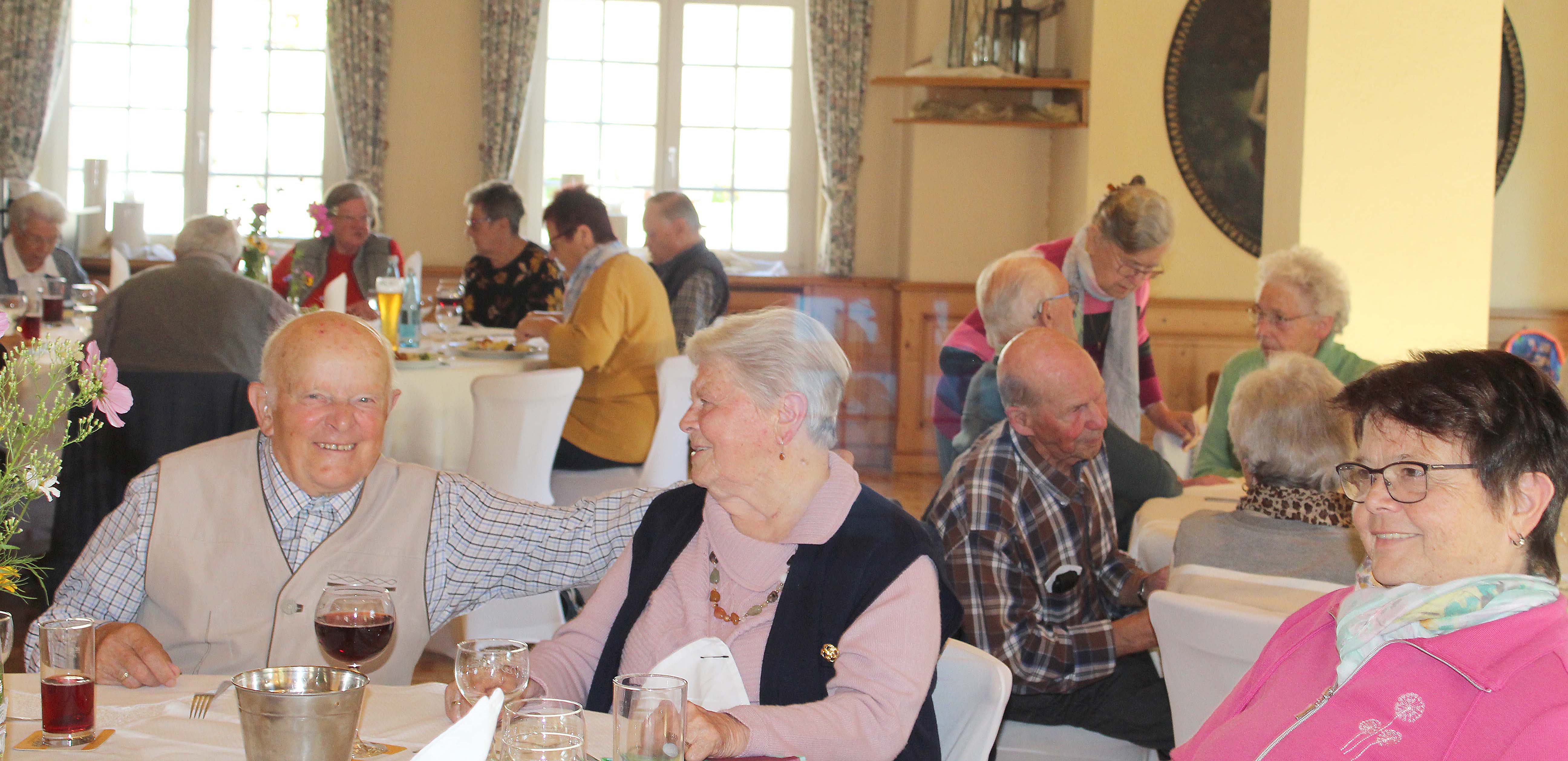 Die Teilnehmer genossen ein gutes Mittagessen samt Dessert. Leni Kuber spendierte nach dem Essen, im Gedenken an ihren verstorbenen Mann Rainer, Kaffee und ein Stück Schwarzwälder Kirschtorte, das sehr gerne angenommen wurde. Herbert Jilg spielte unentgeltlich und sammelte mit seinem Auftritt Spenden für die Hochwasser-Katastrophe im Ahrtal. So kam eine Summe von 250 Euro zusammen.