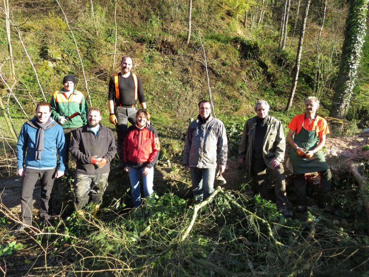 Foto: Gisela AlbrechtCa. 30 freiwillige Helfer kamen am Samstagmorgen zusammen, um gemeinsam den Uferbereich des Waldhäuserbachs an drei Stellen aufzulichten. Dies fördert den Luftaustausch im Tal und kommt der Artenvielfalt zugute. Neben Bürgermeister Richard Weith nahmen Staatssekretär Volker Schebesta, Abgeordneter Martin Gassner-Herz, Christian Schütt vom Naturpark Schwarzwald Mitte/ Nord und Anne-Marie Jarry vom Landschaftserhaltungsverband an der Aktion teil. Bürgermeister Weith koordinierte die Logistik und kümmerte sich um die Verpflegung der Helfer, die anderen Beteiligten legten selber mit Hand an und trugen so konkret am Gelingen der Aktion bei. Von der fachlichen Seite haben die beiden Förster Hans Lehmann und Klaus Pfundstein das Projekt im Detail vorbereitet und geleitet.