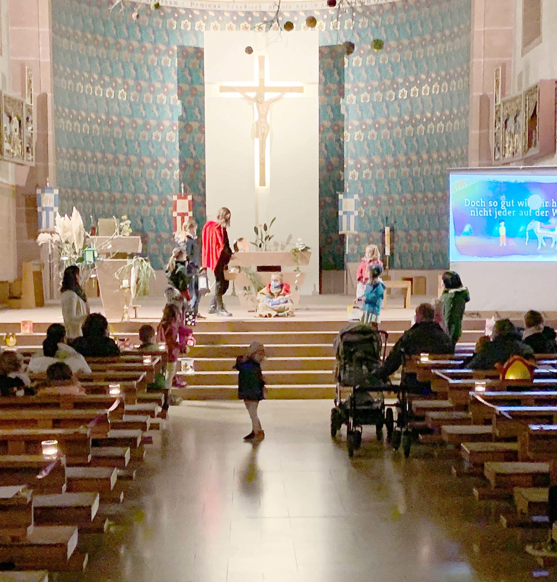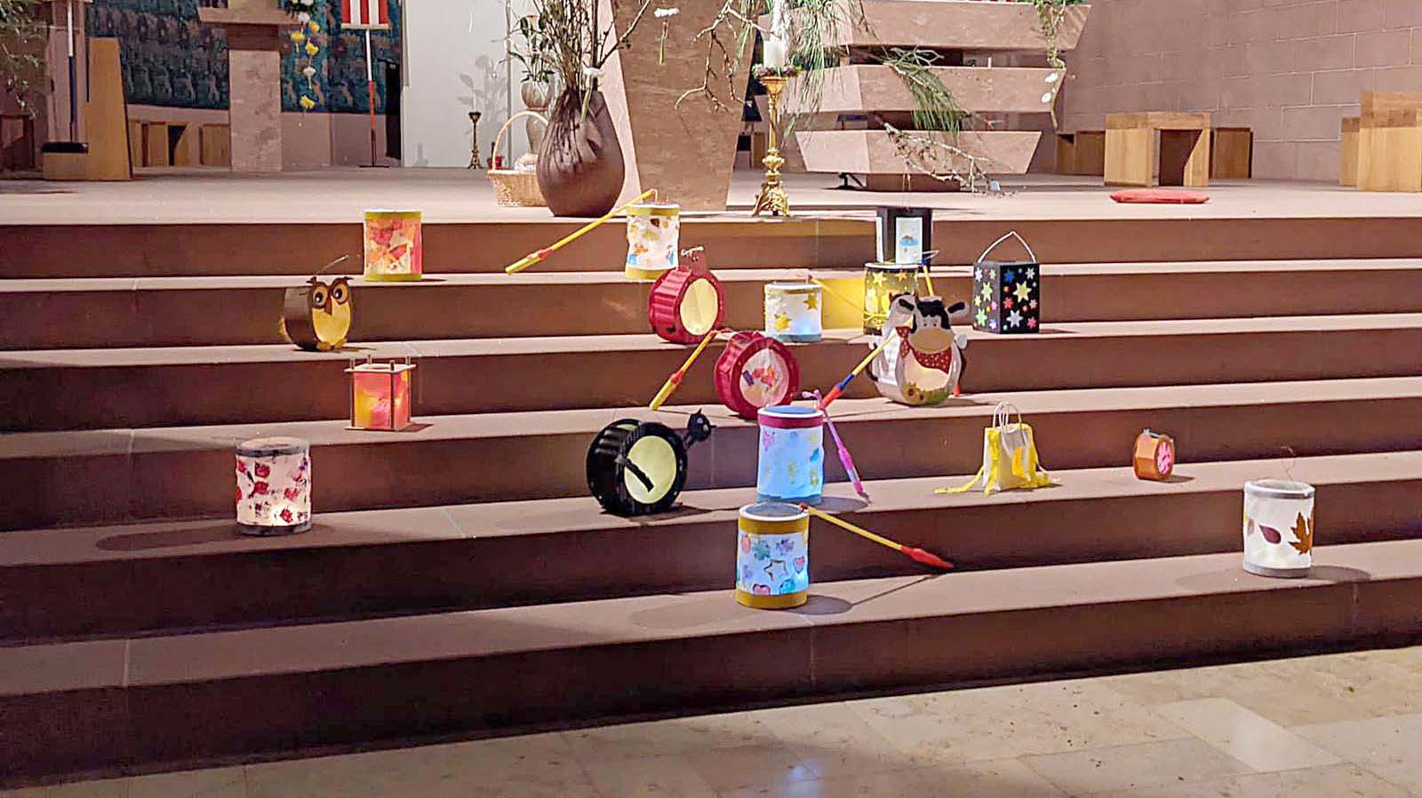 Vor dem Altar hatten Eltern und Kinder einen Lichtertanz zu einem modernen St. Martinslied mit Rapp-Einlage einstudiert, der die Kinder zum Mitmachen begeisterte und viel Applaus bekam.