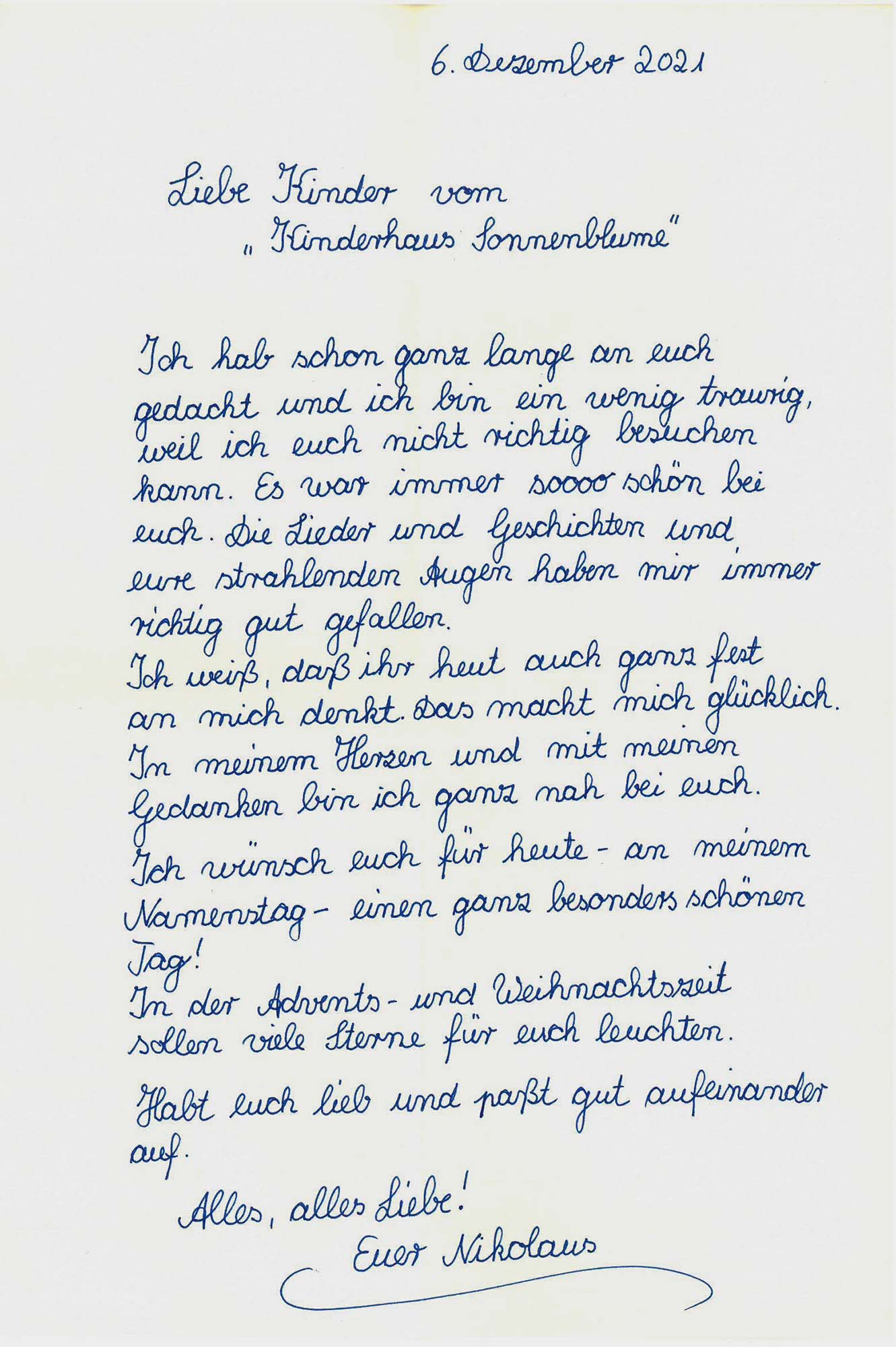 Zur großen Freude kam schließlich aus dem Sack noch eine weitere Überraschung. Ein Brief des Nikolaus.