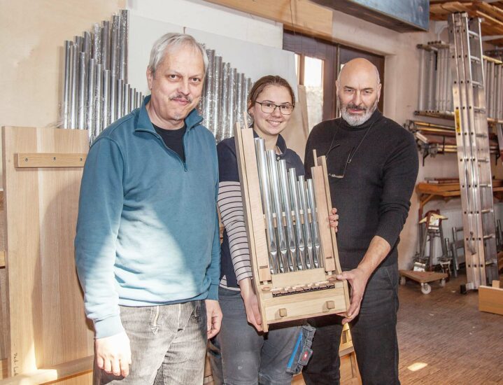 »Wir haben eine engagierte Auszubildende und damit eine vollwertige Mitarbeiterin gefunden, die zu unserer Mannschaft passt«, freut sich Orgelbaumeister Claudius Winterhalter über die Verstärkung in seiner Werkstatt. Dieser besonders vielschichtige Beruf setze neben handwerklichem Geschick auch Veranlagung und Begabung voraus. Deswegen gebe es in dieser Sparte auch einen latenten Mangel nach geeigneten Nachwuchskräften.