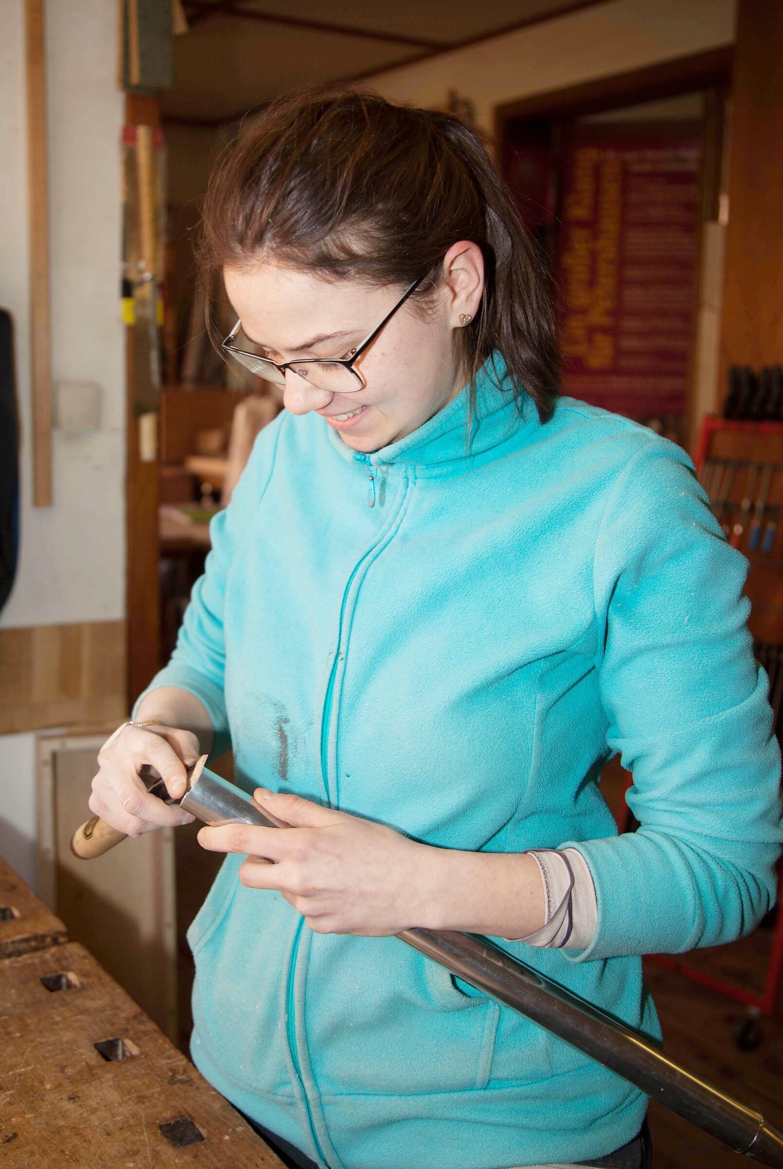 Stolz präsentiert Lisa ihr Gesellenstück. Das Portativ, quasi eine Miniaturorgel mit zwei Holz- und 12 Metallpfeifen, hat sie nach einem vorgegebenen Plan gefertigt. »Neben viel schreinerischer Feinarbeit mussten dazu auch die Pfeifen hergestellt, aufgeschnitten und intoniert werden«, erwähnt sie beiläufig, während sie den kleinen lederbezogenen Blasebalg bedient und ihrem Instrument stimmige Töne entlockt.