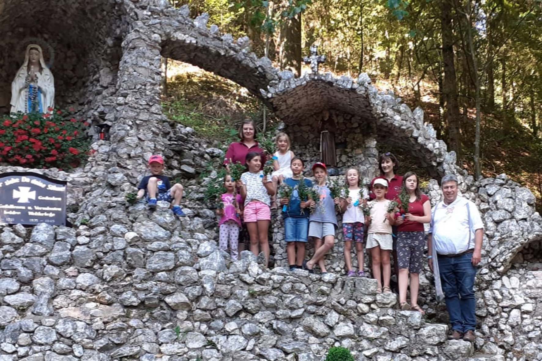 Im Rahmen des Kindersommers haben Mathilde und Kathrin vom DJK-Jugendteam wieder mit den Kindern an der Lourdesgrotte in Zuwald Kräuterbüschel gebunden.