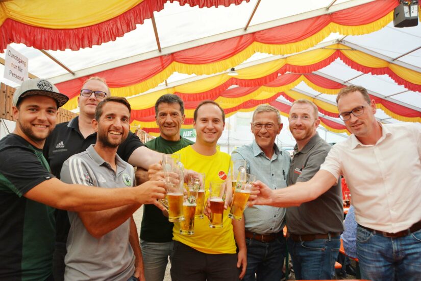 Und so saßen am Montagabend im Kilwizelt Florian Lehmann vom Gesangverein, Friedrich Schneider und Philipp Neuberger von der Miliz- und Trachtenkapelle, Klaus Laifer und Markus Birk von der Bürgerwehr, Thomas Pfundstein und Sebastian Schneider vom Sportverein sowie Bürgermeister Richard Weith zusammen, um gemeinsam auf die Kilwi 2022 zurück und gemeinsam in die Zukunft zu blicken.