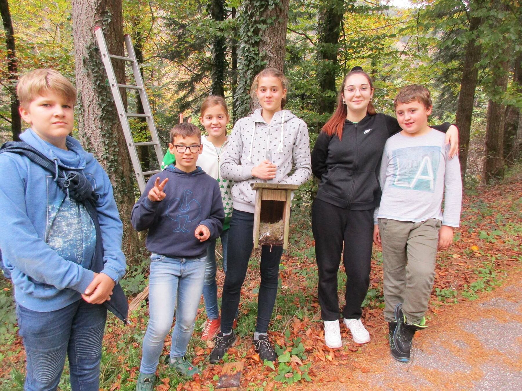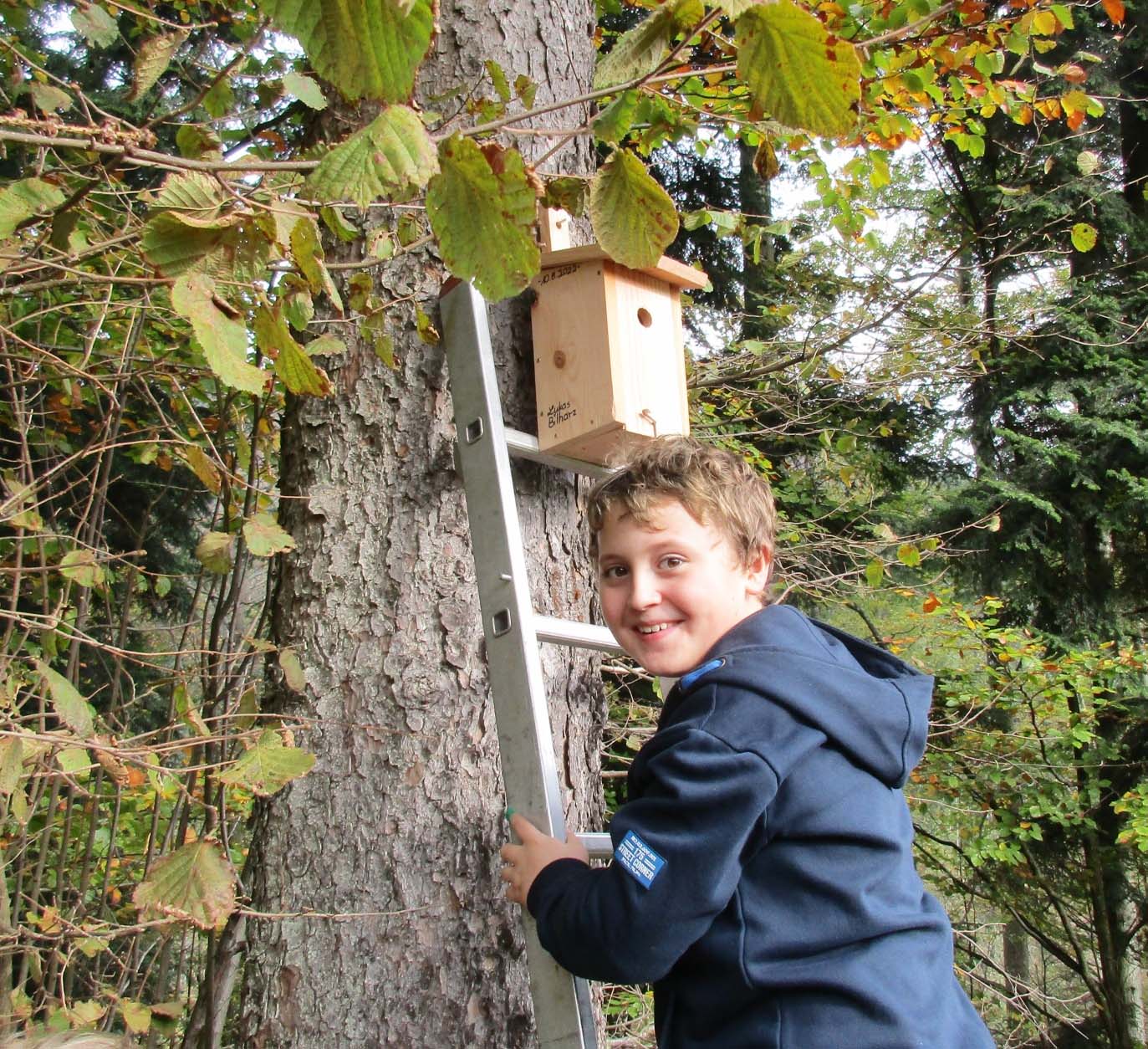 Am ersten Tag der Herbstferien trafen sich die Kinder, die in den Sommerferien im Rahmen des Sommerspaßprogramms einen Nistkasten gebaut hatten, bei der Schule in Oberharmersbach.