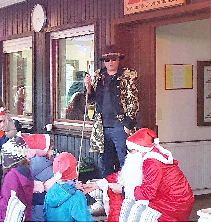 Strach selbst versuchte sich als Knecht Ruprecht und sprach motivierende, aber auch lobende Worte an seine Kids, die alle gespannt die Worte ihres Trainers belauschten. So gab es gegen Ende auch ein Sonderlob an alle Kids, die zuvor beim Turnier in Zell teilnahmen. Bei einem Teilnehmerfeld von 15 Kindern waren alleine 10 Meldungen aus dem Kids-Club Oberharmersbach vertreten.