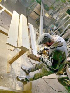 Der Zimmermann Lorenz Jilg, der zugleich Geddie eines Kindergartenkindes ist, hat sich bereit erklärt, einen Kompost für die Naturgruppe zu schreinern. An einer Abendaktion sägte er mit der Erzieherin Judith Uhl die Bretter zu. Die Organisation der Materialien und deren Kosten hat Herr Jilg gespendet. Ein herzliches Dankeschön dafür.