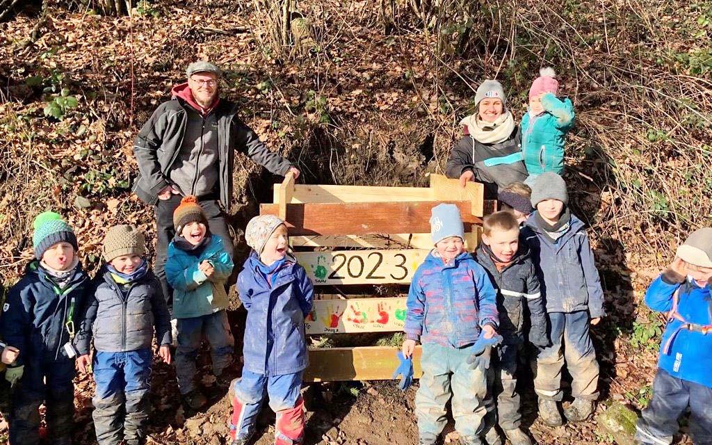 Auf dem Platz von der Naturgruppe aus dem Kinderhaus »Sonnenblume« sind mit Hilfe vieler Eltern, Freiwilligen, Kindern und Erzieherinnen einige tolle Dinge entstanden. Das Waldstück fängt im wahrsten Sinne des Wortes an zu blühen. Doch wohin mit unserem Biomüll? Ein Kompost musste her!