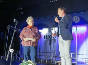 Vor Beginn der Aufführung sagte sie in ihrer Begrüßung: „Ich freue mich über die Fülle der Gäste und die vielen Kinder in den ersten Reihen.“ Sie dankte den vielen helfenden Händen, die diese Aufführung möglich gemacht haben. Bürgermeister Richard Weith dankte ihr als Organisatorin der Veranstaltung in Oberharmersbach mit herzlichen Worten. Er überreichte einen finanziellen Zuschuss der Gemeinde für das Adonia-Projekt und für sie persönlich Blumen für ihren Garten.