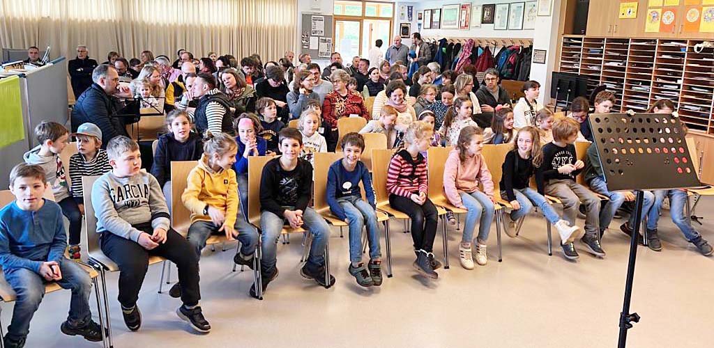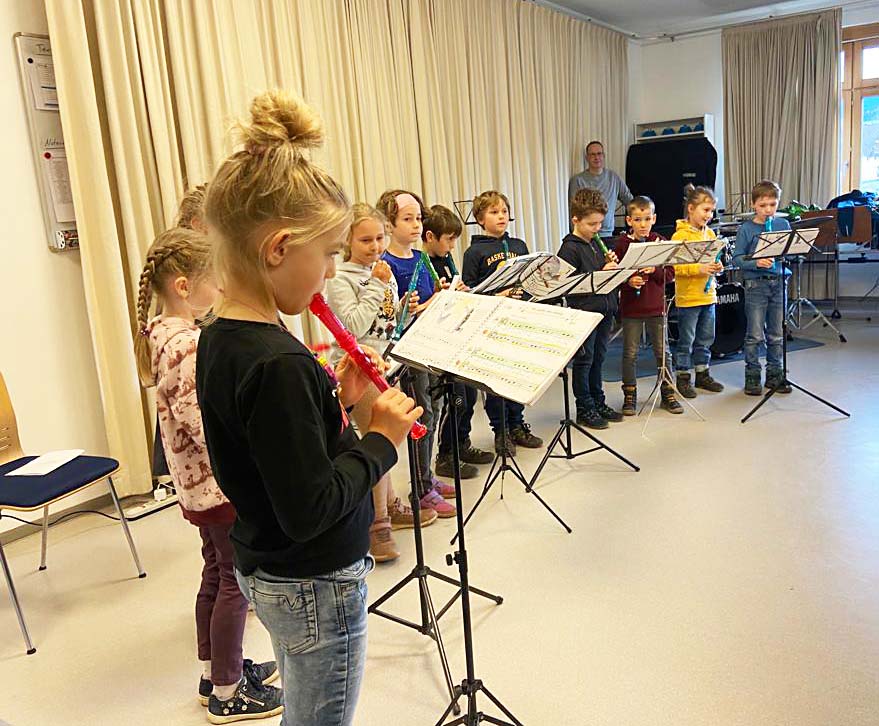 Nach den Einzelvorträgen spielten die Kinder der musikalischen Früherziehung einige Lieder. Die musikalische Früherziehung, geleitet von den vereinsinternen Musikerinnen Stephanie Fritsch und Jelske Isenmann, ist ein gemeinsamer Blockflötenunterricht für Kinder der 2. Klasse, welcher den Kindern spielerisch das Einmaleins des Musizierens beibringt. Nach Abschluss der 2. Klasse kommen die Kinder in die Bläserklasse, in der sie die Instrumente ihrer Wahl spielen dürfen. Seit diesem Jahr unterrichtet Sonja Himmelsbach die Bläserklasse. So stellten die Mädels und Jungs der Bläserklassen an diesem Sonntagnachmittag ihr gelerntes Können fabelhaft unter Beweis.