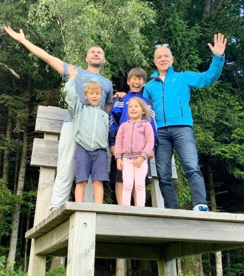 Wochenlang kämpfte mit der Bürokratie, sprach mit der Stadt Zell, der Gemeinde Oberharmersbach und dem Landratsamt. Seine Entschlossenheit ließ nicht nach. Schließlich fand er über einen Kontakt in München eine ukrainische Familie, die er bei sich aufnehmen konnte. Sie war über Moldawien, Rumänien und Polen nach Deutschland geflohen. Nastia kam nach vier Wochen in einer Münchner Notunterkunft mit ihren Kindern David (heute 7), Karima (5) und Raman (11) nach Oberharmersbach. Am 31. März 2022 wurde es konkret, am 4. April 2022 holte er die Geflohenen zusammen mit seiner Tochter in Offenburg am Bahnhof ab. Ein großer Koffer, eine Umhängetasche und zwei Kindertrolleys – mehr hatten die unbekannten Gäste nicht dabei. Seit diesem Tag wohnt die Familie bei Horst Lehmann. Sie leben in einer herzlichen Wohngemeinschaft, teilen Wohnraum, Küche, Bad. Private Zimmer für die Dauergäste gibt es in dem gemütlichen Haus genug, denn Lehmanns eigene Kinder sind schon ausgezogen.