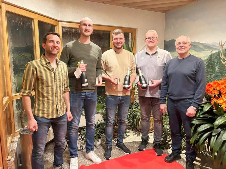 Helmut Killig, ehemaliger Vereinsvorstand, nahm die Ehrungen für langjährige Mitgliedschaft vor. Für 15 Jahre ununterbrochene aktive Vereinszugehörigkeit erhielten Jonas Schwarz, Fabio Huber, Manuel Jilg und Sebastian Schneider die Vereinsnadel in Silber.