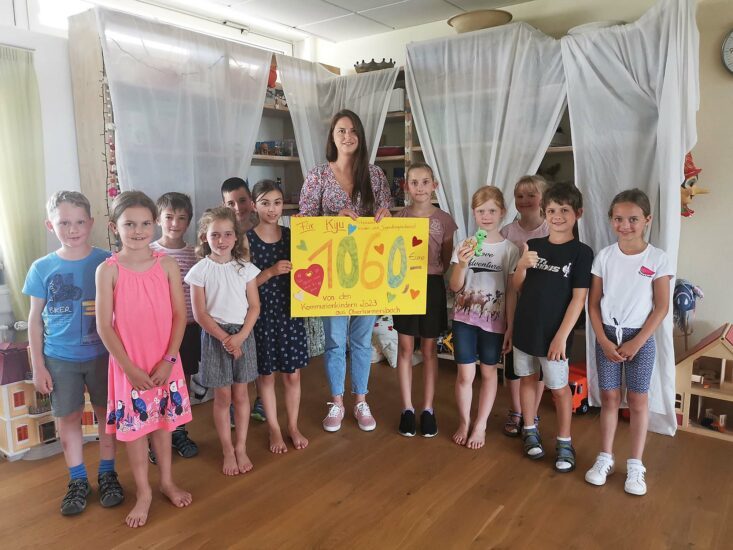 Der Tag der Ersten Heiligen Kommunion liegt zwar schon einige Wochen zurück, dennoch haben sich die diesjährigen Oberharmersbacher Kommunionkinder am letzten Donnerstag getroffen. Und zwar zu einem ganz speziellen Anlass: Sie haben gemeinsam ihre gesammelte Spende an den Kinder- und Familienhospizdienst Ortenau e.V. übergeben.