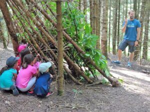 Für die Schulfüchse aus dem Kinderhaus Sonnenblume ging es am Freitag mit Tobias Ohmann, bekannt als Wildnis coach aus dem Kinder-TV, in den Wald. Bei Spiel und Spaß entdeckten und lernten sie viel Neues. Tobias stellte den Kindern Waldentdecker-Aufgaben, die sie in einer vorgegebenen Zeit lösen sollten. „Wenn ihr es gemeinsam als Gruppe schafft, innerhalb von fünf Minuten 20 verschiedene Blätter von Pflanzen zu mir zu bringen, dann zeige ich euch gleich, wie man ein Waldversteck baut“, so Tobi. „Falls nicht, lege ich mich für den Rest des Tages entspannt in die Sonne“, fügte er grinsend hinzu. „Das war für unsere schlauen Füchse ein großer Anreiz und natürlich gar kein Problem“, berichten Andrea Jung und Nadine Müller, die als Erzieherinnen des Kinderhauses mit von der Waldpartie waren. „Anschließend sollten verschiedene Tiere und Tierspuren gefunden werden. Dabei gab es für lebende Tiere auf der Hand Zusatzpunkte“, so Andrea lachend. „Unsere begeisterten Füchse schauten ganz genau, suchten an Stämmen und Ästen, auf dem Waldboden und unter Steinen und erspielten sich einen weiteren Programmpunkt“. Wie versprochen wurden anschließend Waldverstecke gebaut. Aufgeteilt in kleinere Gruppen machten sich die Kinder daran, Stämme, Blätter, Moos und weitere Naturmaterialien zu sammeln und so zusammenzufügen, dass Tobi sie dahinter nicht sehen konnte, sie aber erkennen konnten, wie viele Finger er hochhält. Für diese Aufgabe hatten die Schulfüchse eine Stunde Zeit, in der Wildniscoach Tobi ihnen mit Rat und Tat zur Seite stand. „Und natürlich wurde sie mit Bravour gemeistert, sodass abschließend noch Wasserraketen gebaut werden konnten“, so Andrea. Dabei wird eine PET-Flasche zur Hälfte mit Wasser gefüllt, mit Korken inklusive Fahrradventil verschlossen und per Luftpumpe gestartet. Mit Hilfe von Steinen und Klebeband wurde der Effekt noch verbessert, sodass die Raketen viele Meter weit flogen. Ein spannendes Experiment also, das gleichzeitig die willkommene Abkühlung brachte. „Die drei Stunden vergingen wie im Fluge, alle hatten sehr viel Spaß und nebenbei spielerisch noch allerhand gelernt“, waren sich Andrea und Nadine abschließend einig.