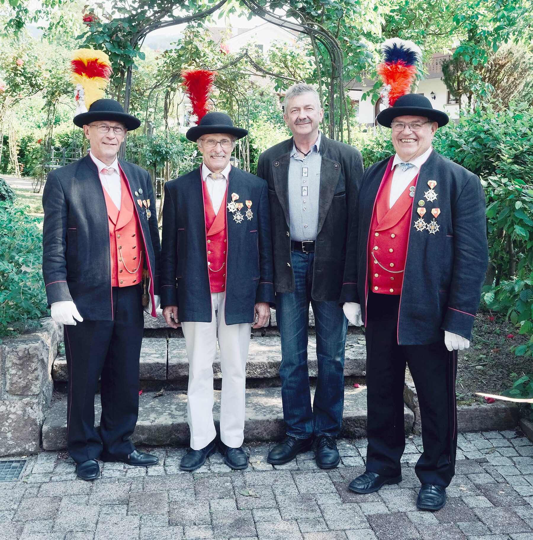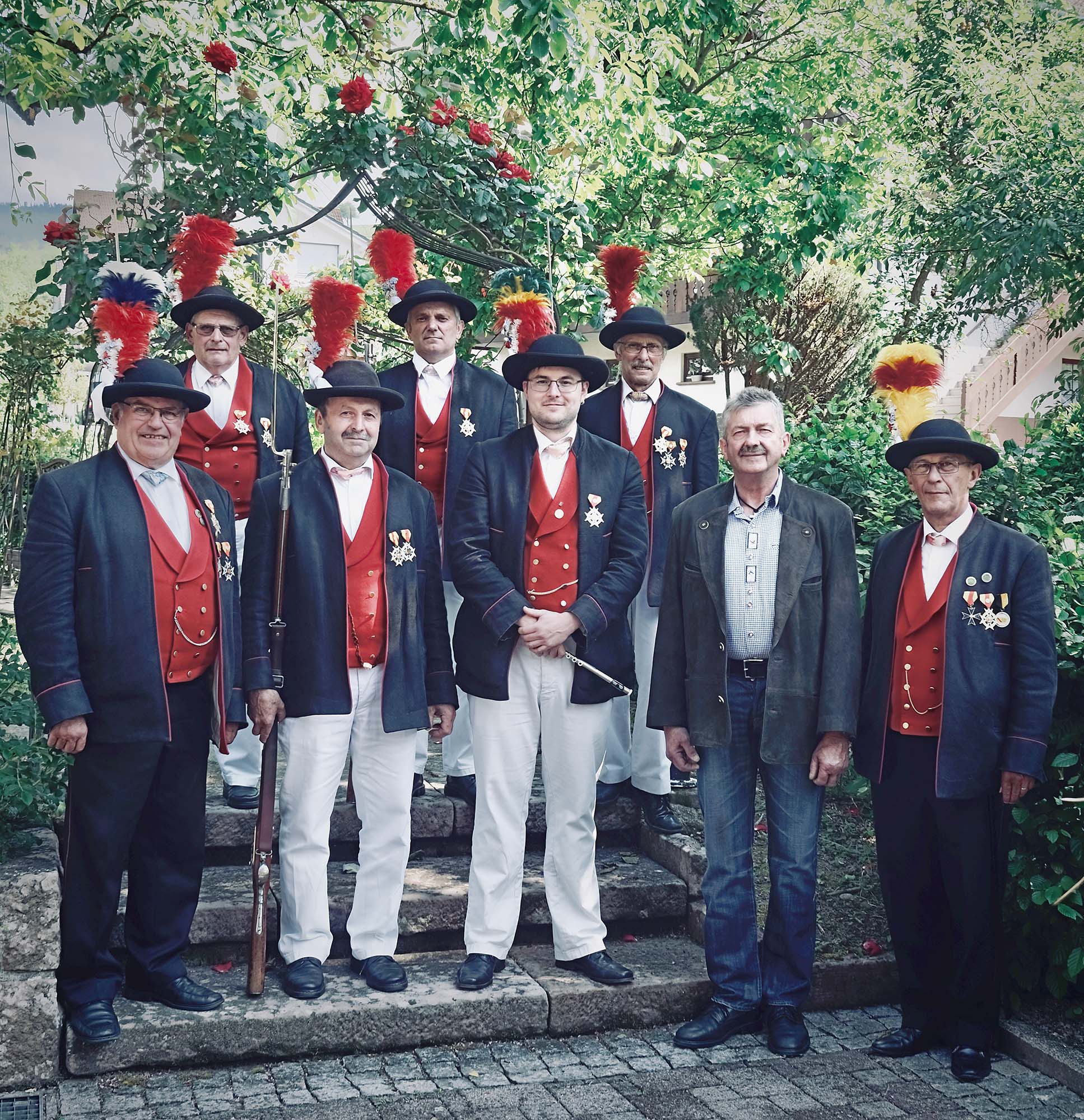1973 war das Jahr, in dem Friedrich Huber und Fridolin Lehmann sich der Bürgerwehr anschlossen. Sie tragen seither das Gewehr mit Stolz und Würde. Klaus Laifer blickte auf 50 Jahre aktive Dienstzeit zurück: »Ihr beide seid sehr zuverlässig und pflichtbewusst. Sowohl bei Proben und Auftritten als auch bei Arbeitseinsätzen kann man auf euch zählen«.