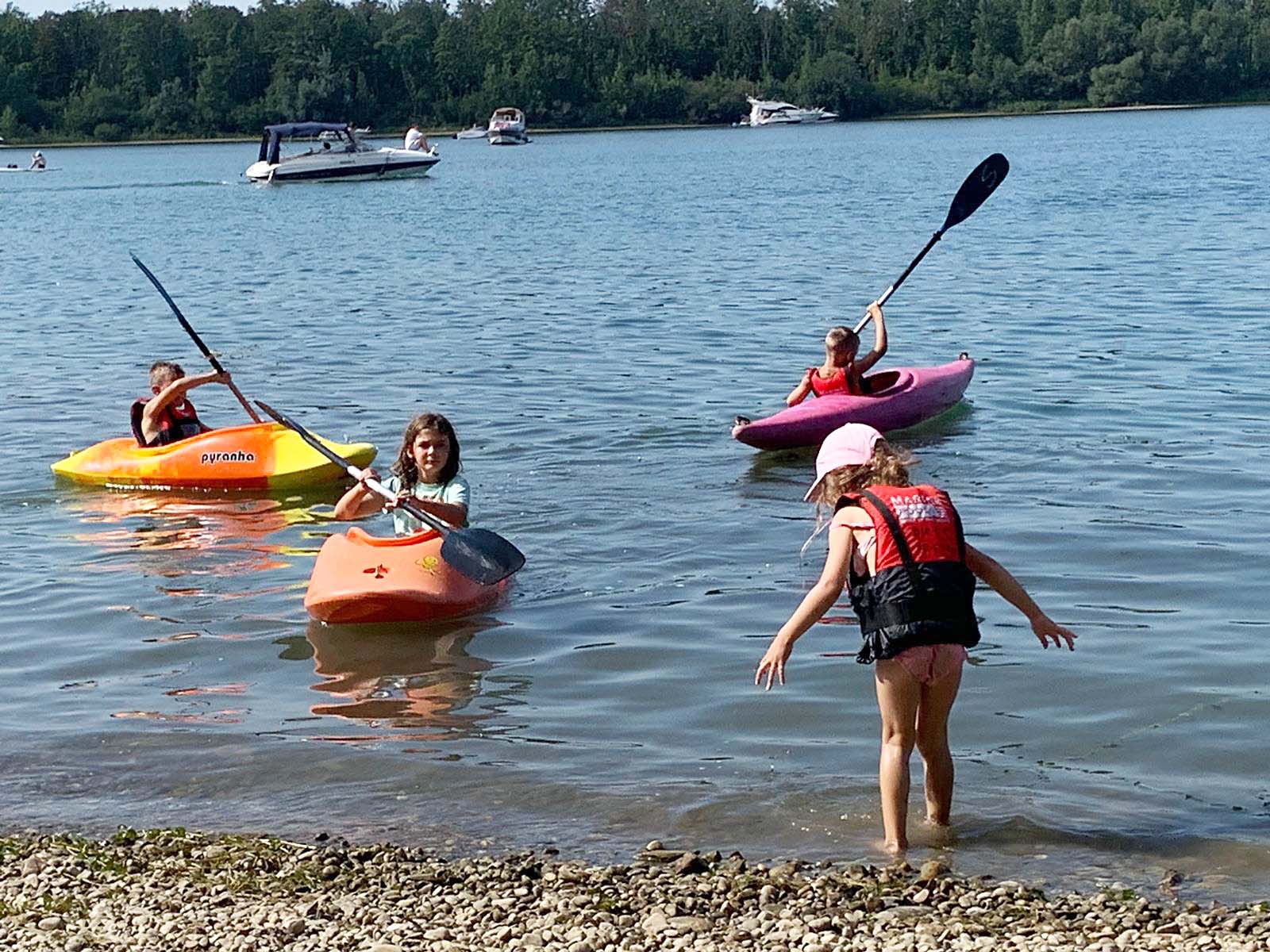 Vergangenes Wochenende war die DJK Oberharmersbach wieder in Rheinau Freistett am Altrhein und paddelte mit Kanus, Kajaks und Standup-Paddling-Boards im Altrhein.