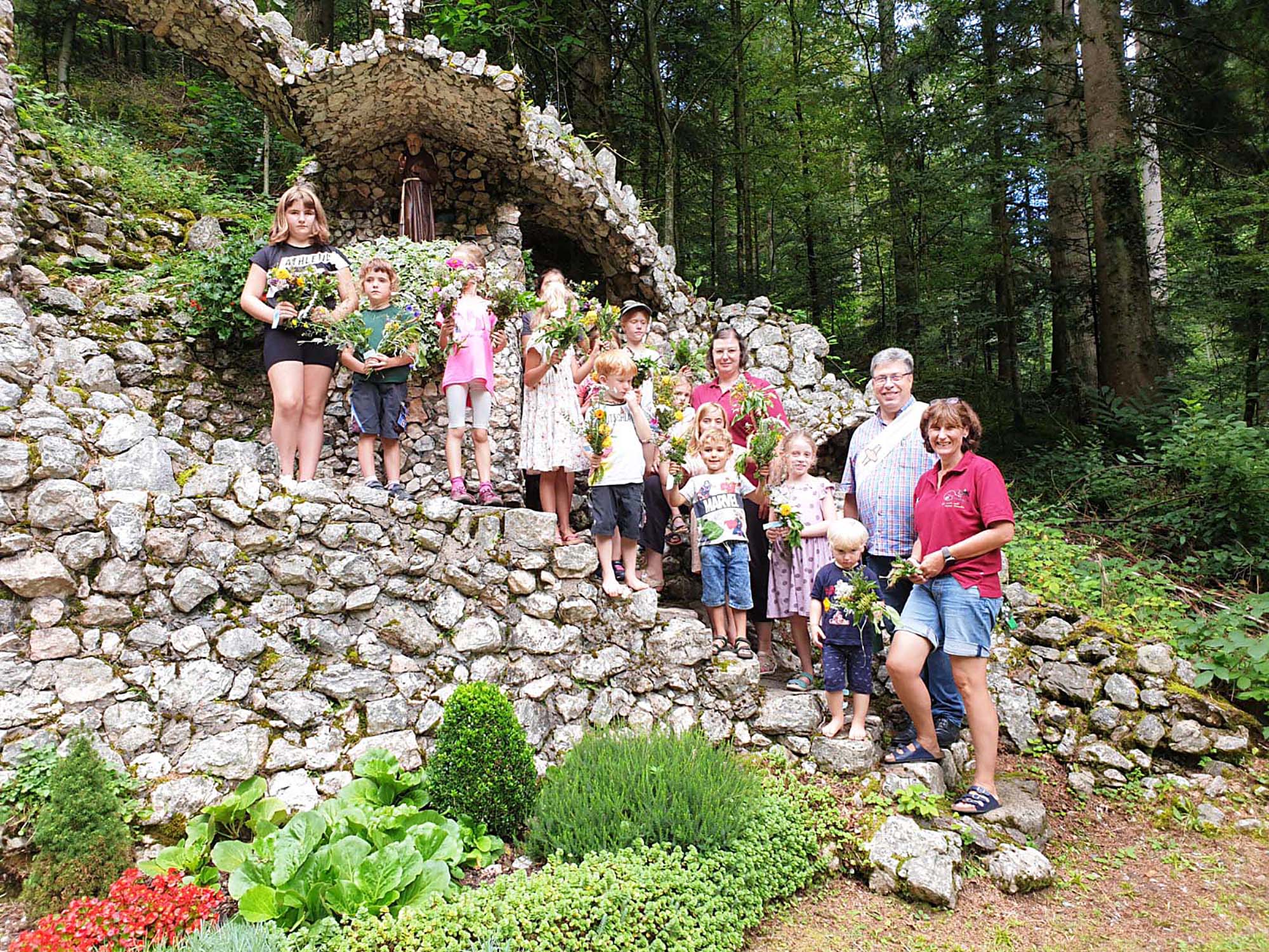 Im Rahmen des Oberharmersbacher Kindersommers haben Mathilde und Kathrin vom DJK-Jugendteam wieder mit den Kindern an der Lourdesgrotte in Zuwald Kräuterbüschel gebunden. Diese Aktion rund um Tradition und Brauchtum findet nun schon einige Jahre statt und hat sich bewährt.