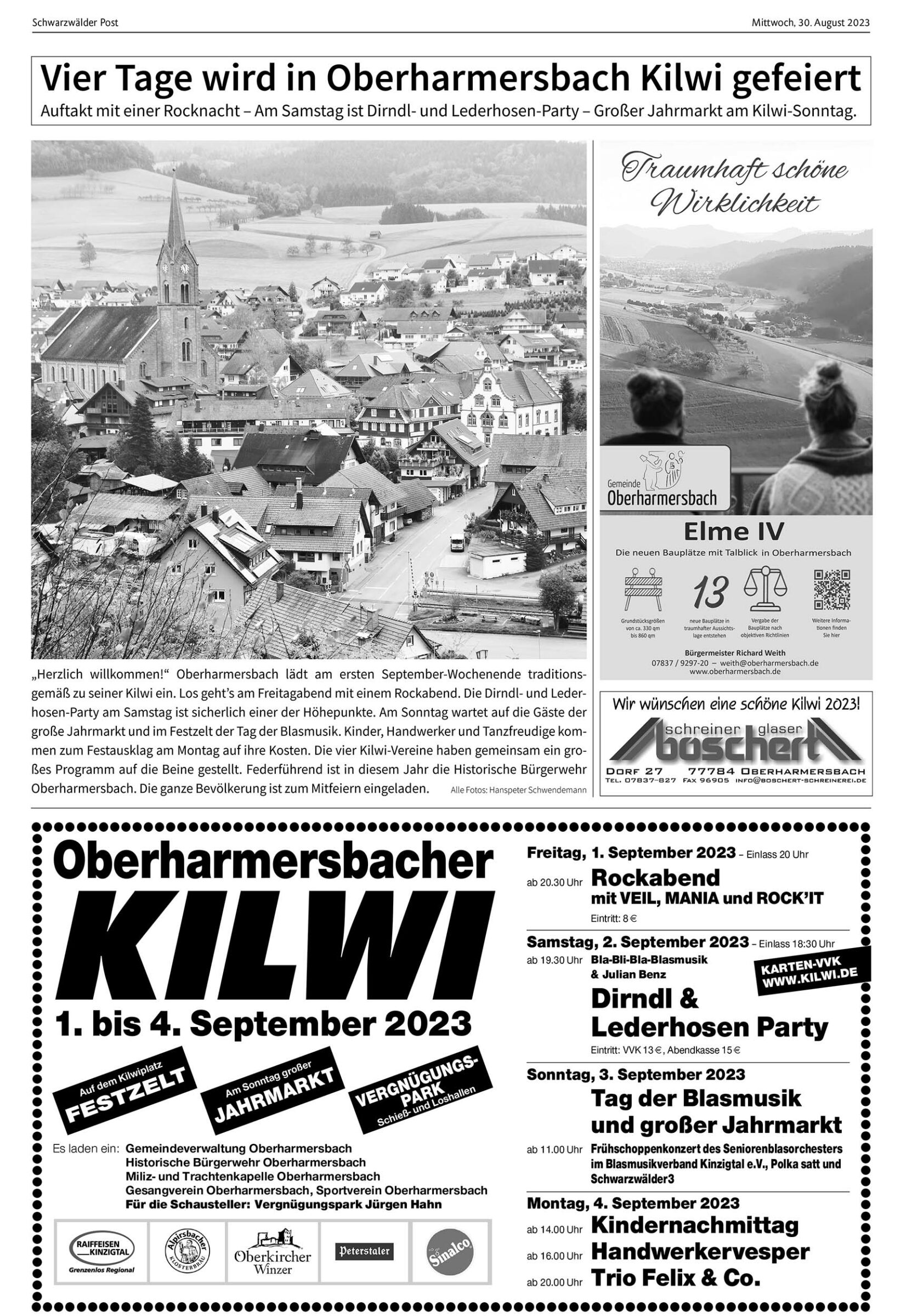 Oberharmersbach | 30.08.2023 Vier Tage wird in Oberharmersbach Kilwi gefeiert Foto:Am kommenden Sonntag, 12. Oktober 2025, sind die Bürgerinnen und Bürger der Gemeinde Oberharmersbach zur Bürgermeisterwahl aufgerufen. Foto: Hanspeter Schwendemann von Hanspeter SchwendemannAuftakt mit einer Rocknacht – Am Samstag ist Dirndl- und Lederhosen-Party – Großer Jahrmarkt am Kilwi-Sonntag. Foto: Hanspeter Schwendemann Foto: Veranstalter Foto: Hanspeter Schwendemann Foto: Hanspeter Schwendemann/VeranstalterDas könnte Sie auch interessieren:Foto: Inka Kleinke-BialyVom Club der Kläuse: Namensvettern beim…Foto: privatGoldenes Leistungsabzeichen: Zwei…Foto: Gisela AlbrechtRespekt für viele Dienstjahre