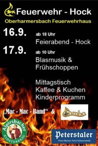 Am Samstag und Sonntag, 16./17. September 2023, öffnet die freiwillige Feuerwehr Oberharmersbach ihre Tore zum „Feuerwehr-Hock“.