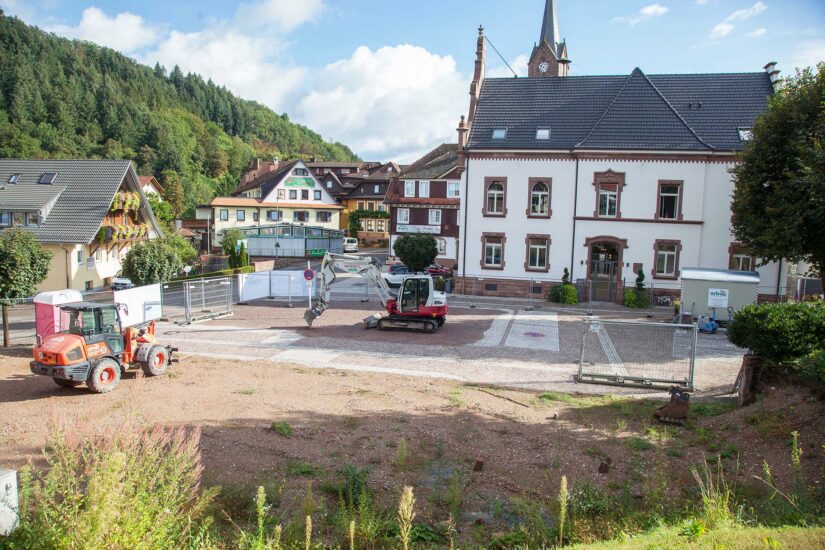 Die Neugestaltung des Rathausplatzes hat begonnen. Damit erhält die Oberharmersbacher Ortsmitte ihr künftiges Aussehen.