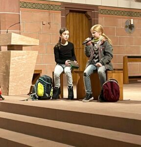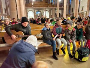 Kinder haben mit einem Rollenspiel in verschiedenen Szenen eindrucksvoll gezeigt, wie viele Möglichkeiten man jeden Tag hat, anderen Menschen zu helfen, sie zu trösten oder einfach nur für sie da zu sein. Das sind auch die Worte Jesu: „Wir sollen da sein, wenn andere uns brauchen“. Sascha Huber und die Jugendkapelle umrahmten den Gottesdienst mit passenden Liedern.