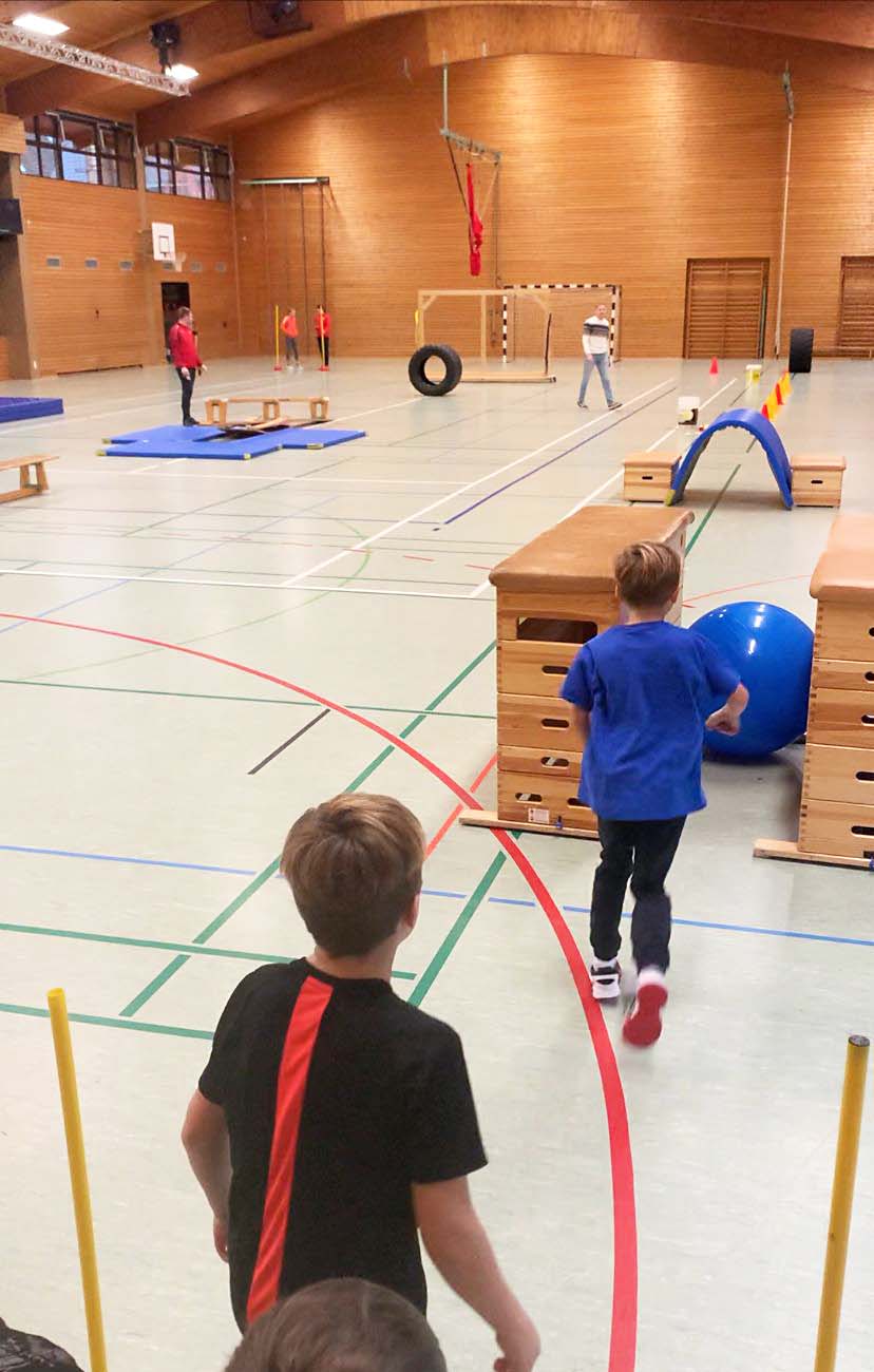 Bevor gefeiert wurde, durften sich die Kinder bei verschiedenen Übungen in der Reichstalhalle auspowern.