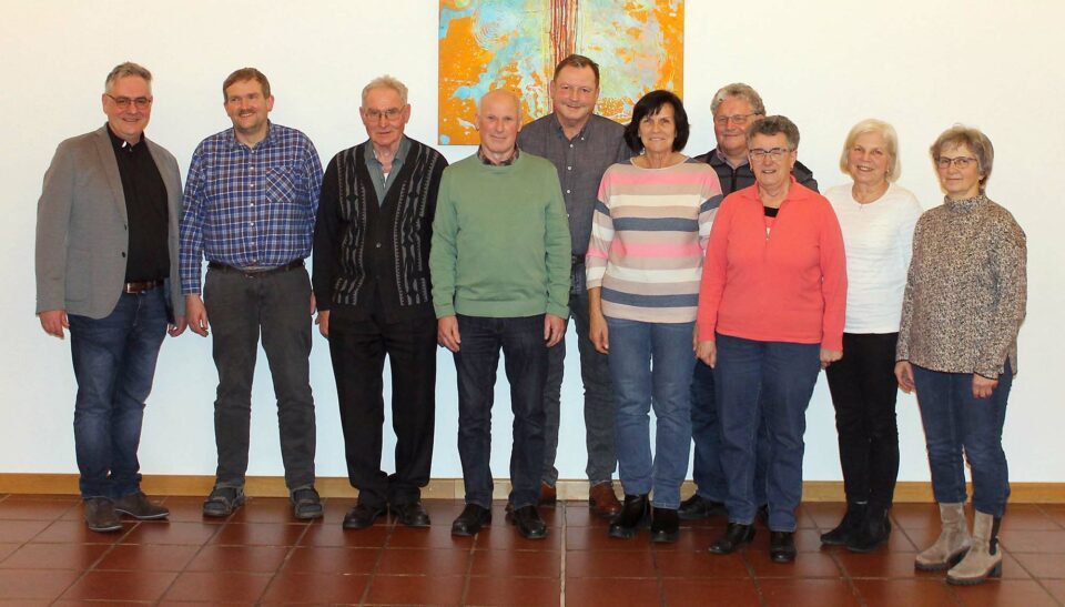 Monika Bleier, Sprecherin des Gemeindeteams, begrüßte rund 60 Personen aus den verschiedensten Bereichen des Gemeindelebens. Nach dem gemeinsamen Essen konnten Monika Bleier und Pfarrer Gerner zahlreiche Ehrungen für langjährige ehrenamtliche Mitarbeit vornehmen. Leider mussten auch einige Mitarbeiter verabschiedet werden. Theresia Breig hat 55 Jahre die Kirchenwäsche betreut, August Haas neun Jahre bei der Kirchenreinigung mitgeholfen und Julia Lehmann war neun Jahre Ministrantin.