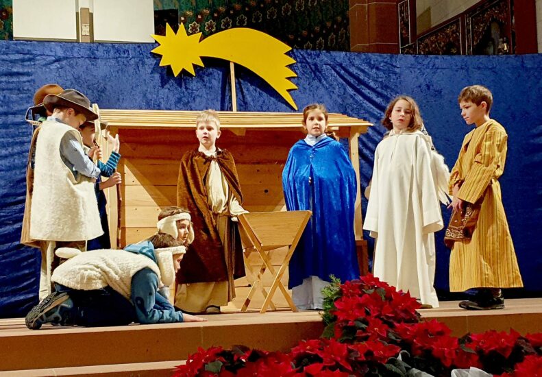 Foto: Stephanie KasperAn Heiligabend fand am Nachmittag die Kinderkrippenfeier in der Pfarrkirche St. Gallus statt. Viele Familien waren gekommen, um den Gottesdienst an diesem wichtigen Tag im Kirchenjahr gemeinschaftlich zu feiern.