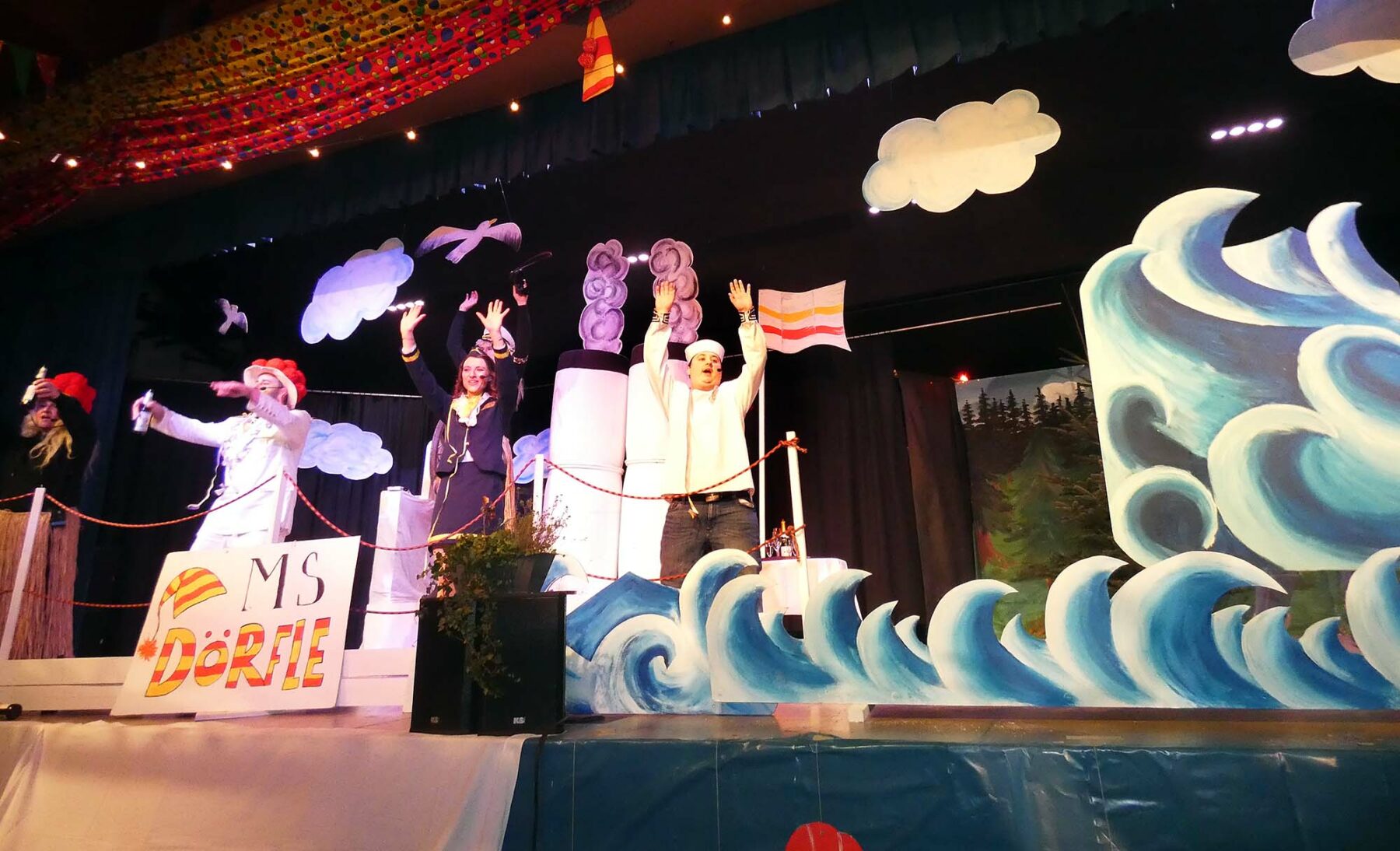 Kunterbuntes Geschehen auf der „MS-Dörfle“, das kuriose Kreuzfahrtschiff nahm das Publikum „an Land“ von Anfang an mit.