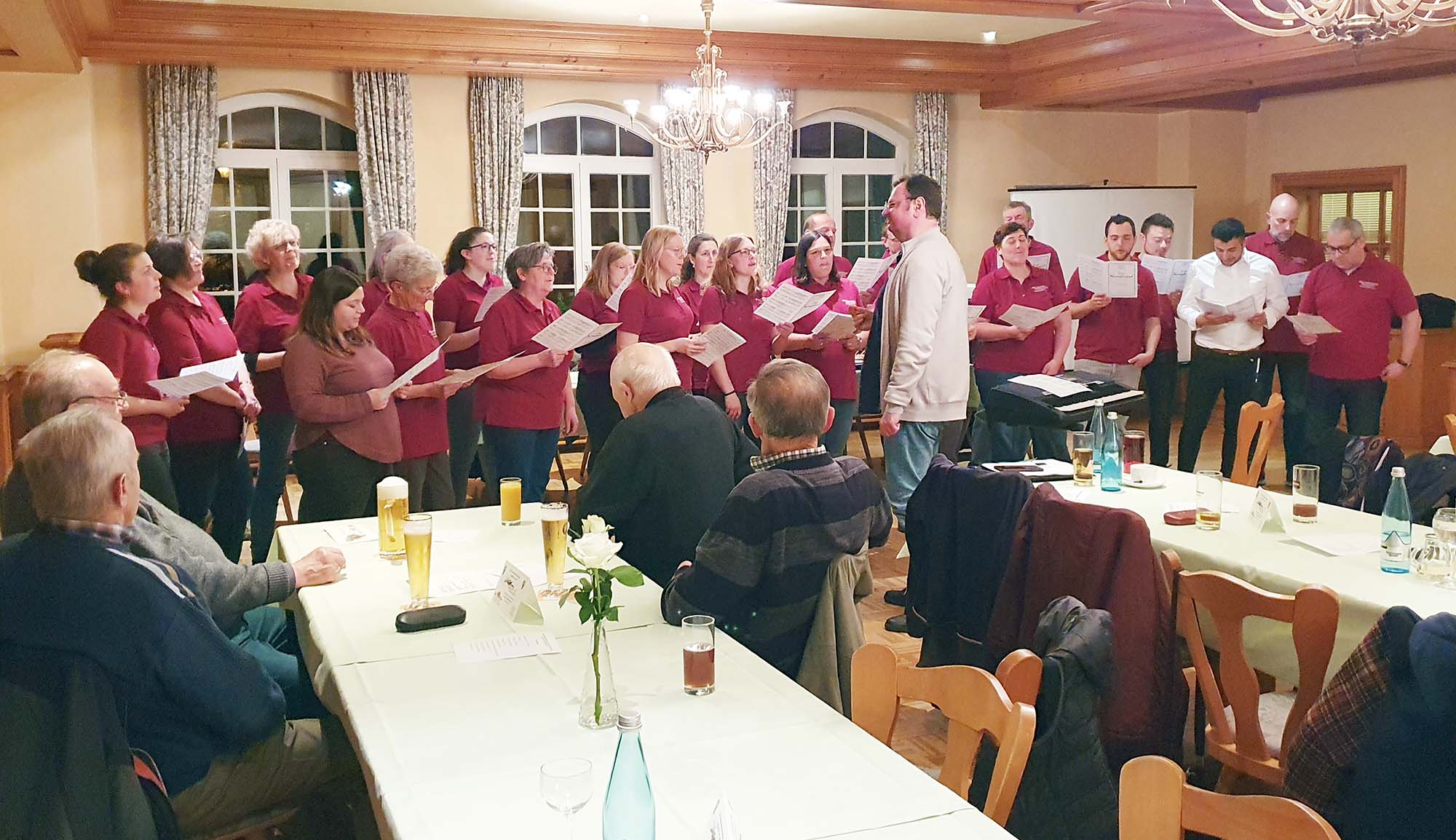 Auch die gesangliche Begleitung gleich zweier Hochzeiten aktiver Sänger und Sängerin des Chors im Sommer, sowie beim Gottesdienst an Fronleichnam zusammen mit dem Kirchenchor Oberharmersbach und beim Begräbnis eines ehemaligen Sängers wurden erfüllt. Insgesamt probte der Gesangverein 47 Mal.