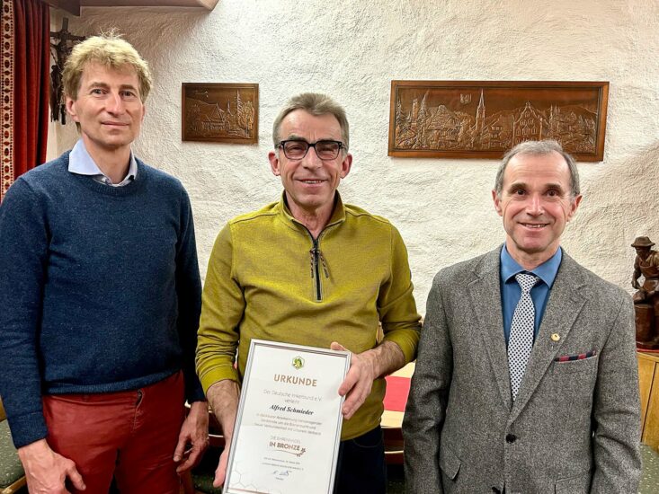 Für 10 Jahre Mitgliedschaft im Imkerverein wurde Alfred Schmieder geehrt. Vorsitzender Albert Lehmann sprach ihm für seine Hilfe und Einsatz im Imkerverein ein herzliches Dankeschön aus. Alfred Schmieder unterstützt seit Jahren mit Arbeitskraft und Gerätschaften den Erhalt der als Blumenweiden angelegten Flächen.