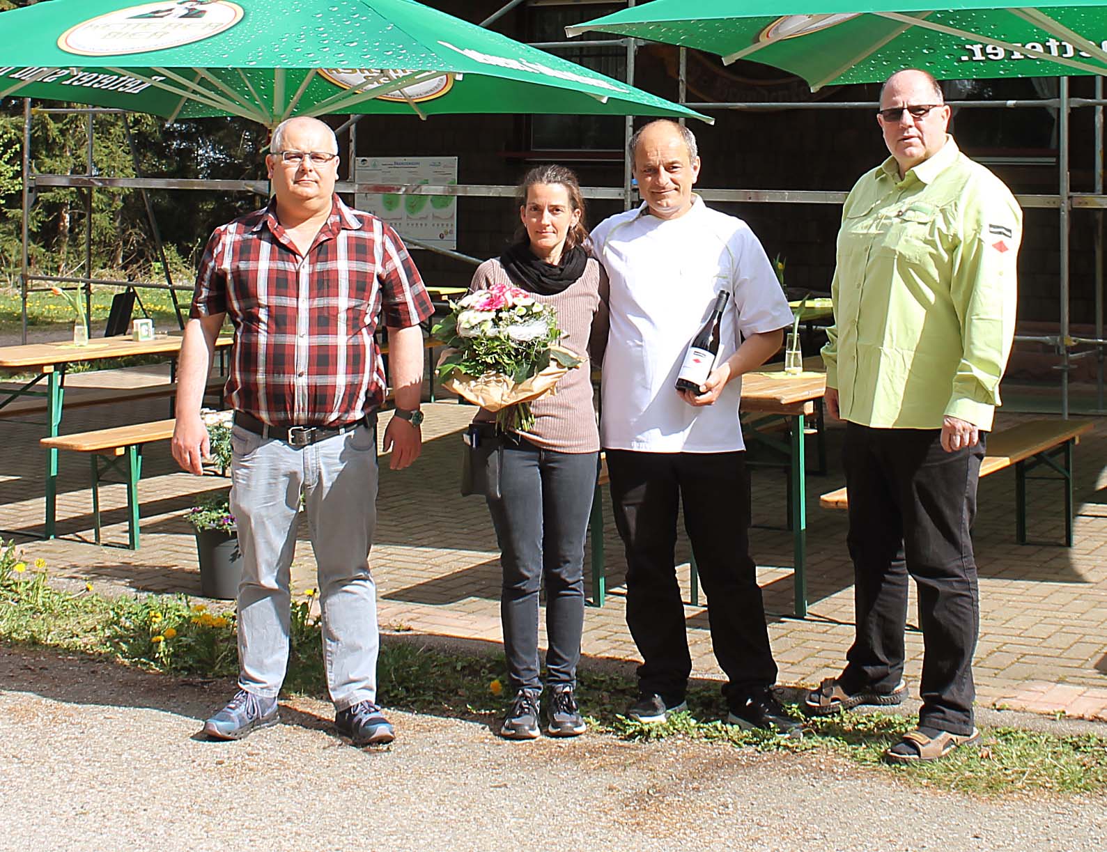 Am Morgen des 1. Mai schauten die Vorsitzenden Stefan Kienzle und Thomas Vollmer vom Schwarzwaldverein Oberharmersbach auf dem Brandenkopf vorbei, um den Pächtern Evelyn und Gregor Skopinski an ihrer neuen Wirkungsstätte viel Erfolg zu wünschen.