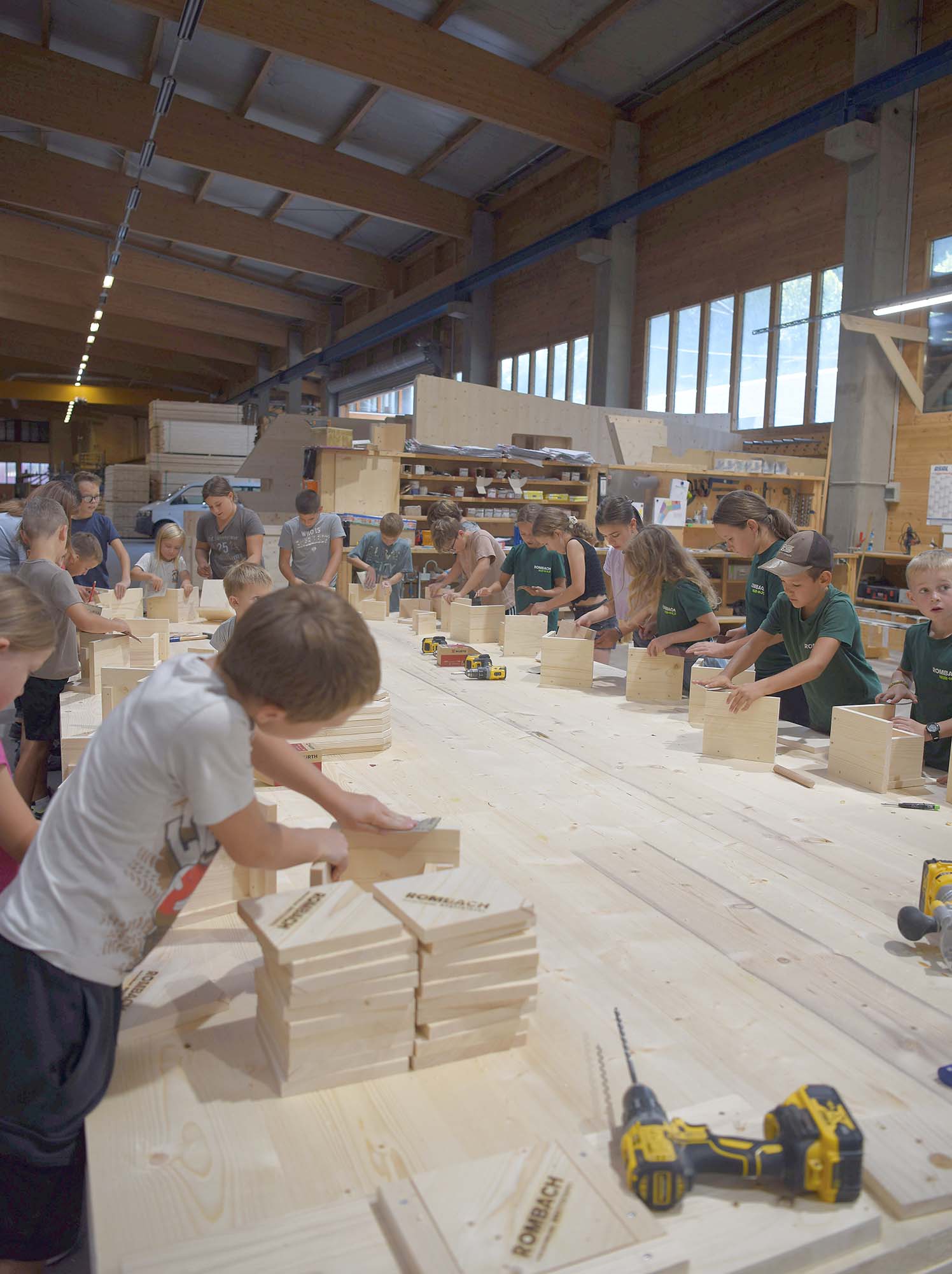25 motivierte Kinder waren im Rahmen des Oberharmersbacher Kindersommers für einen Nachmittag bei der Firma Rombach zu Gast. Das Programm hat mit einer spannenden Besichtigung begonnen. Kindgerecht wurde den 7- bis 13-Jährigen die Arbeitsabläufe im Werk und die Herstellung der NUR-HOLZ Massivholzhäuser erklärt.