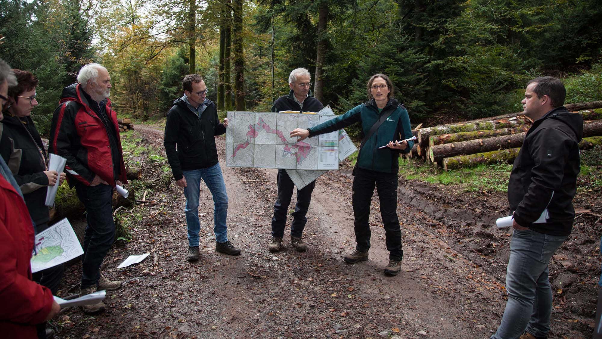Einen Einblick in den aktuell laufenden Holzeinschlag brachte eine Pause an der Hermersberger Hütte, in der bei Most und Brezeln mit den Forstwirten der Gemeinde und der Waldservice Ortenau deren Arbeit bei der Diskussionsrunde im Mittelpunkt stand.