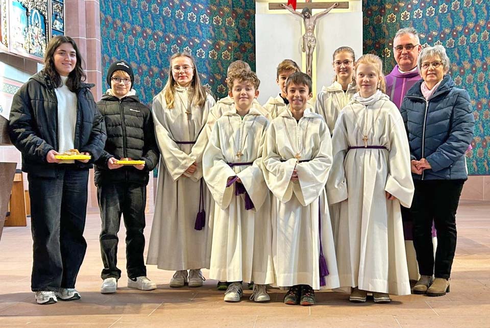 Die Fürbitten trug Heiko Echtle vom Betreuungsteam vor. Sie richteten sich an die Ministranten, ihre Gemeinschaft und ihre Familien, ebenso an die ehemaligen Mini stranten, die in diesem Gottesdienst aus ihrem Dienst verabschiedet wurden.