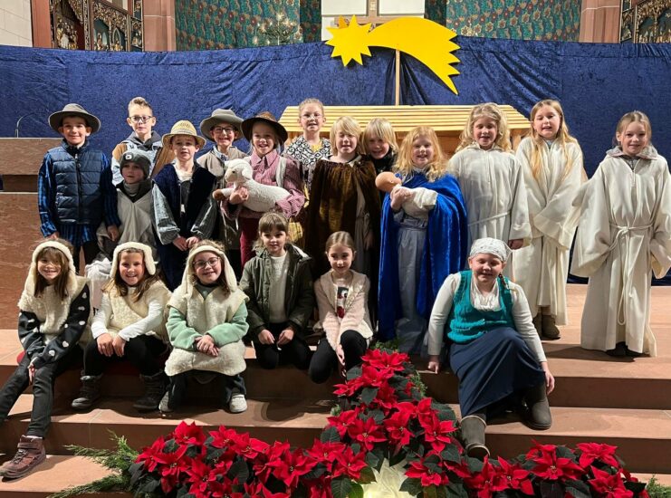 In diesem Jahr wurde ein Wortgottesdienst gefeiert. Die Gestaltung des Gottesdienstes übernahm das Erstkommunion-Team bestehend aus Stephanie Kasper, Katrin Lehmann, Mar tina Lehmann, Nicole Lehmann, Tanja Lehmann und Mathilde Zimmermann. Sie bereiteten auch das Krippenspiel mit den Kommunionkindern 2025 vor.